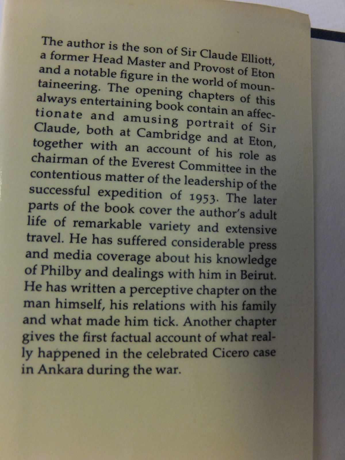 Fine condition in a nearly fine dustwrapper. Blue boards, gilt title to spine. About Sir Claude Elliott. B/w photos.