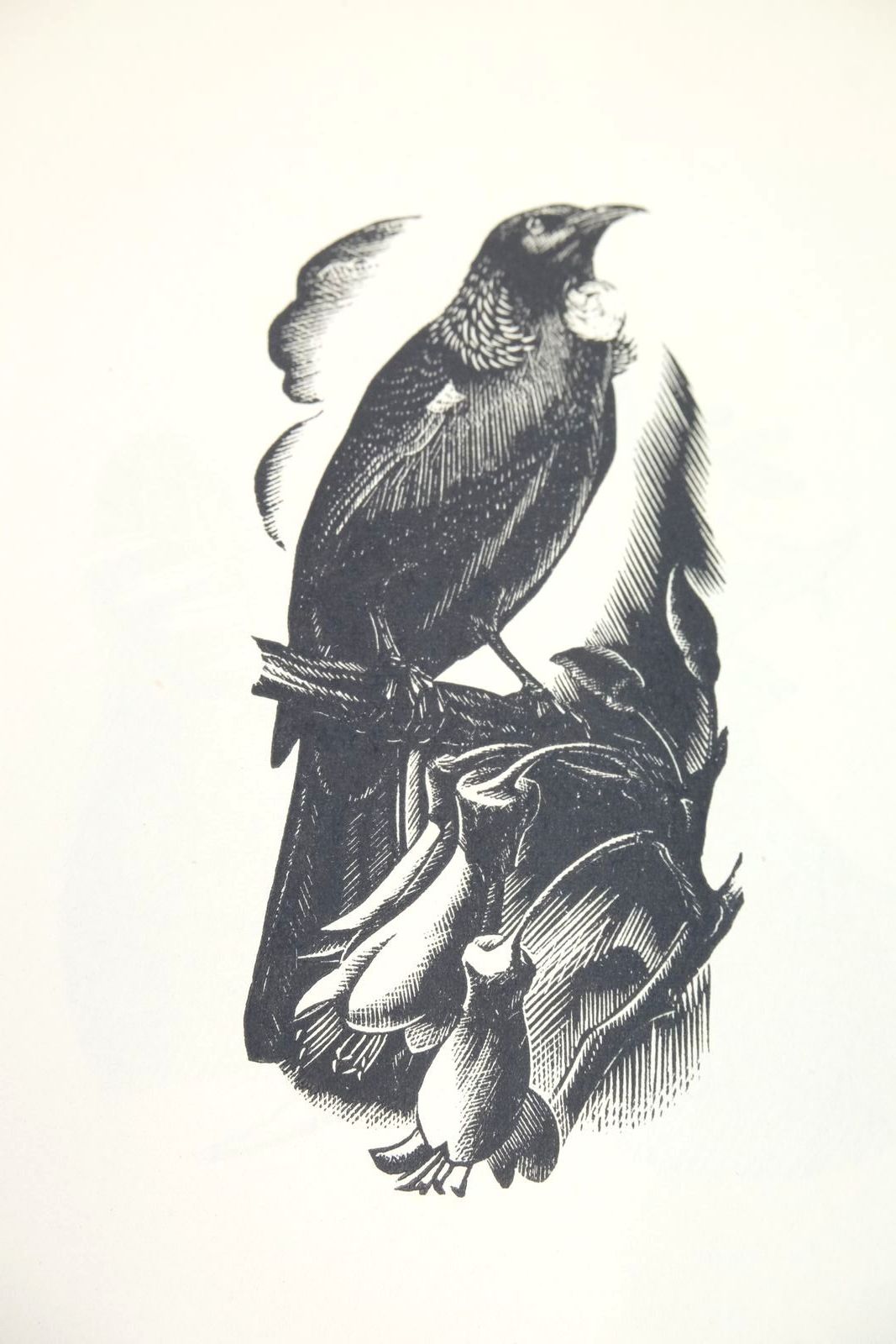 Very good condition in a very good dustwrapper. Red cloth, white title label to front cover. Beautiful b/w wood engravings, subjects of which are familliar to the New Zealand mind.
