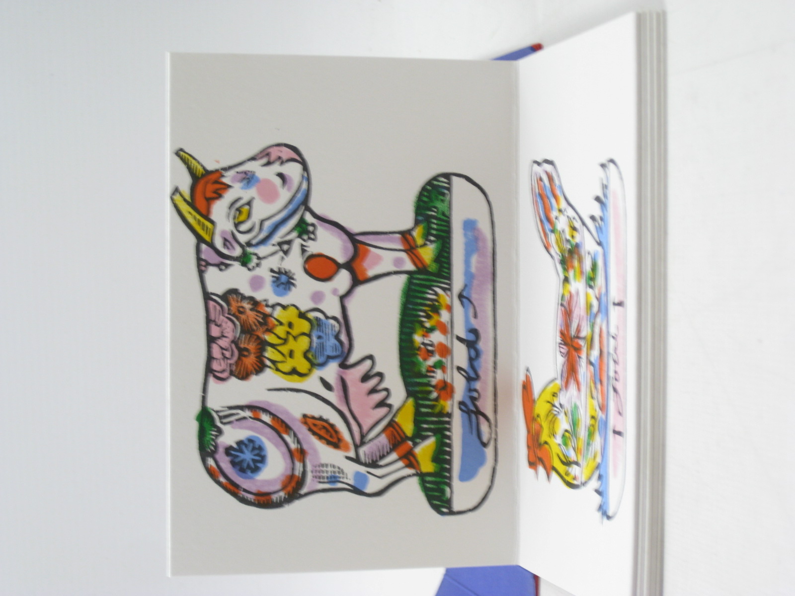 Very good condition. Hand printed for Paul Smith. Red cardwraps with gilt titles and decorations to front and back. Concertina fold out of bright illustrations. No words.