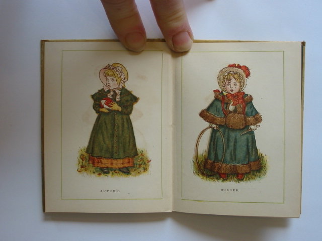 Very good condition. Dark cream pictorial boards, yellow cloth spine. Blue/green endpapers. Enchanting illustrations throughout, mostly of young ladies in typical Greenaway dress. 4 x 3".