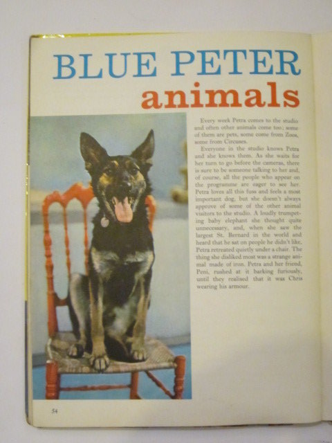 Backstrip misssing (as usual). Corners bumped and worn. Child's name in belongs to box and again to facing endpaper. Xmas sticker to front endpaper. Puzzles done. Blue Peter competition form filled in but still present.