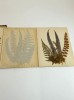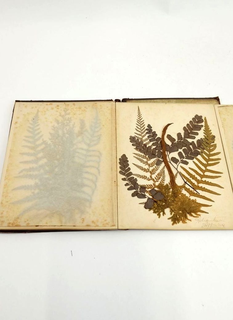 Good condition. An album of pressed New Zealand fern specimens. Mounted on card which opens concertina style. 8 pages of pressed specimens with tissue guards. Hand-written botanical name to each page. Burgundy cloth spine & corners, brown patterned cloth to sides, gilt title to front board.