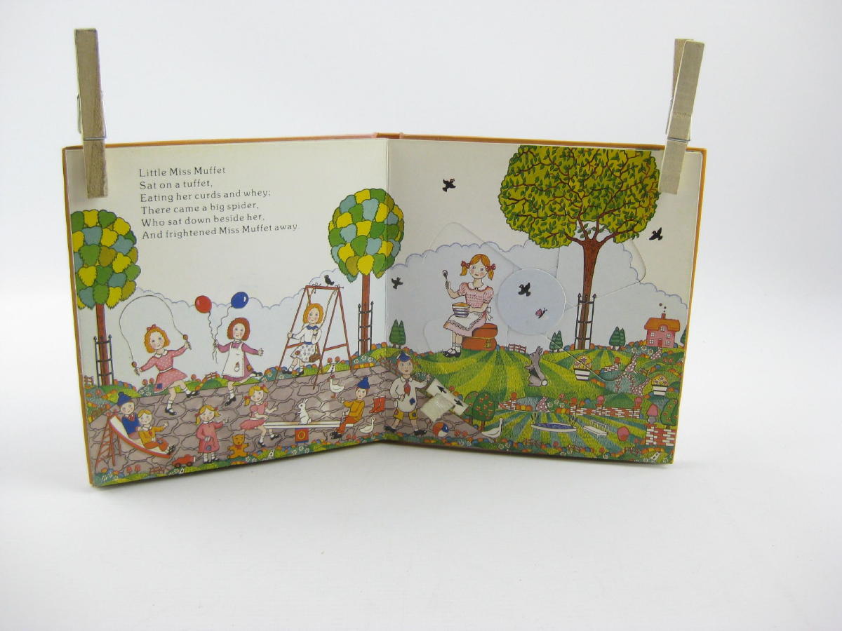 Spine and corners a little bumped. Spine faded. a few bubbles to the covering on the boards. Jack and Jill moveable not working and Goosey, Goosey moveable a little stiff but others are in good working order.