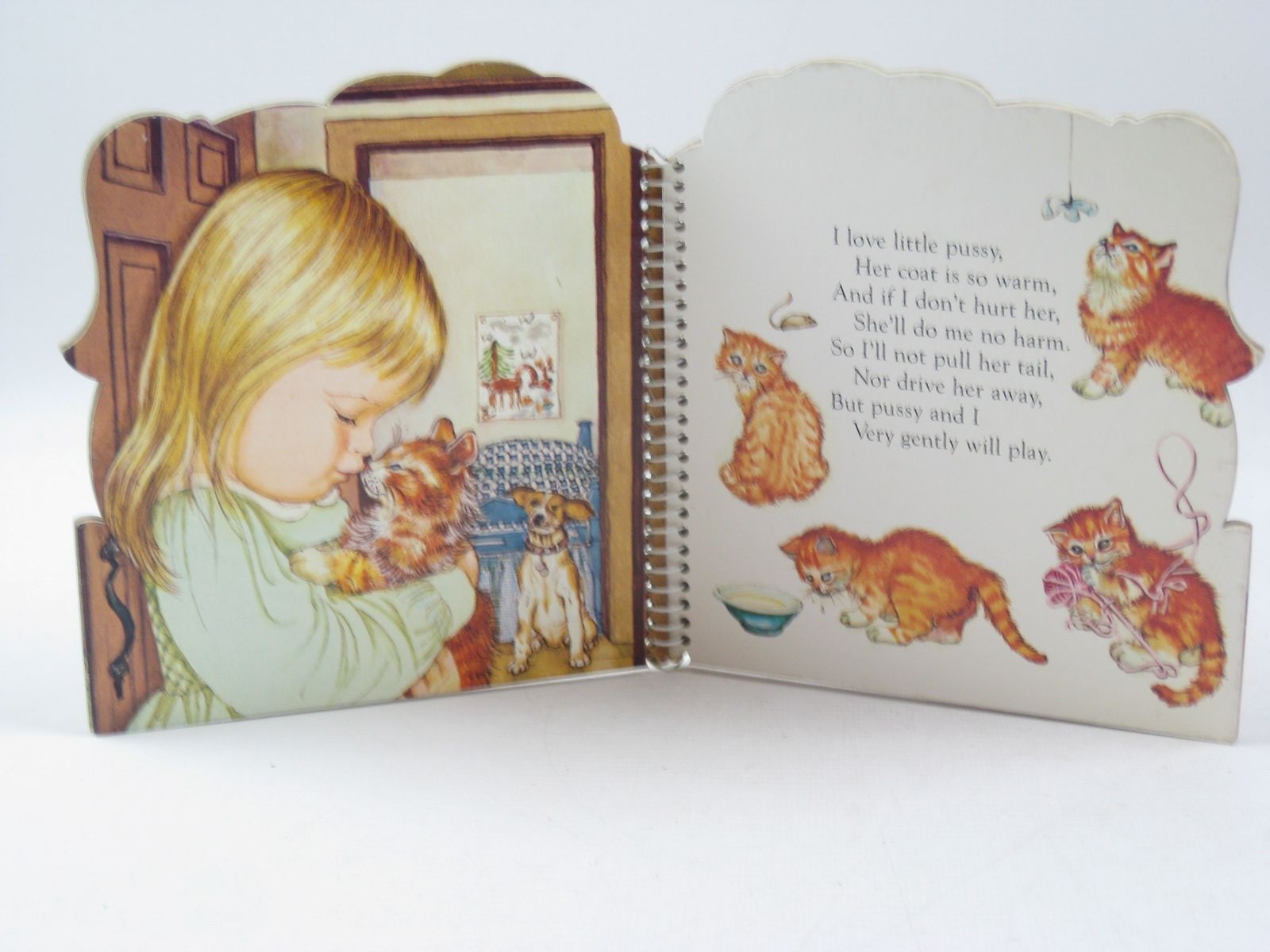 Very good condition. A collection of 11 nursery rhymes beautifully illustrated in colour. Spiral bound, shaped pages of thick card.