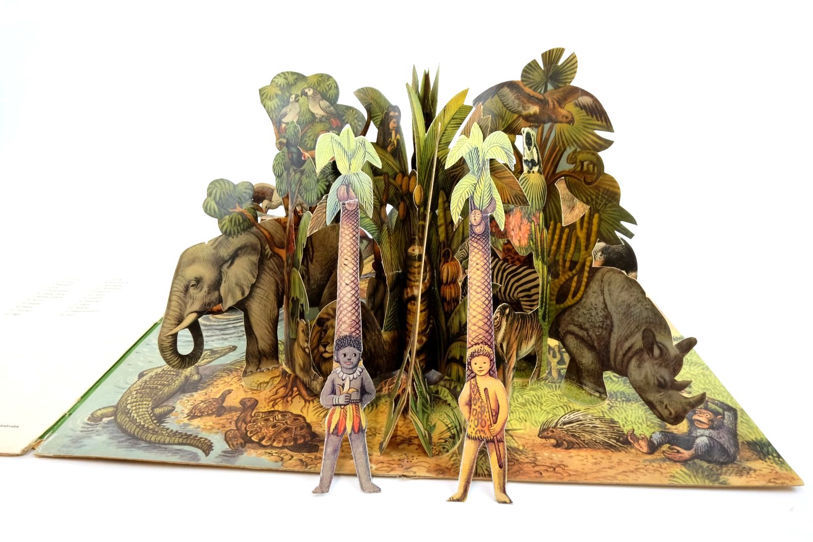 Creasing to cover corners; a little chipping. Page creasing, with some browning and foxing. Pop-up is generally good - very good - some creases and repairs. Free swinging monkey is present - and two free standing characters/tress.