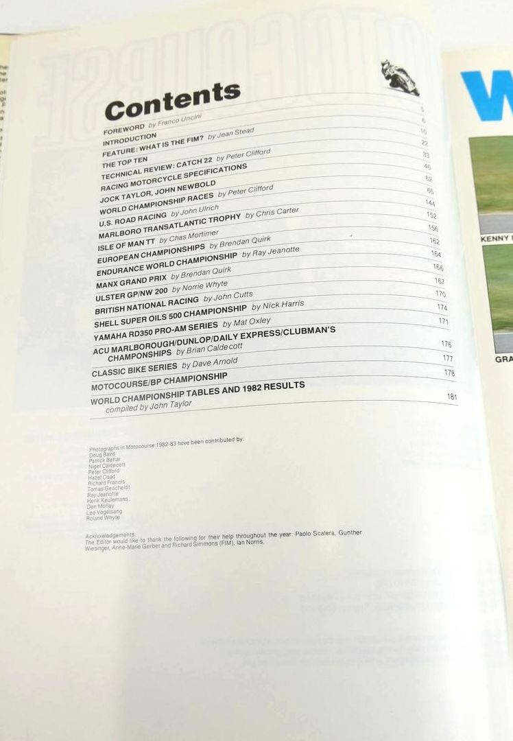 Very good condition in a very good dustwrapper. Motorcycle racing. Large format. Blue cloth boards, gilt title to spine. Colour and b/w photos. Foreword by Franco Uncini. 192 pages.