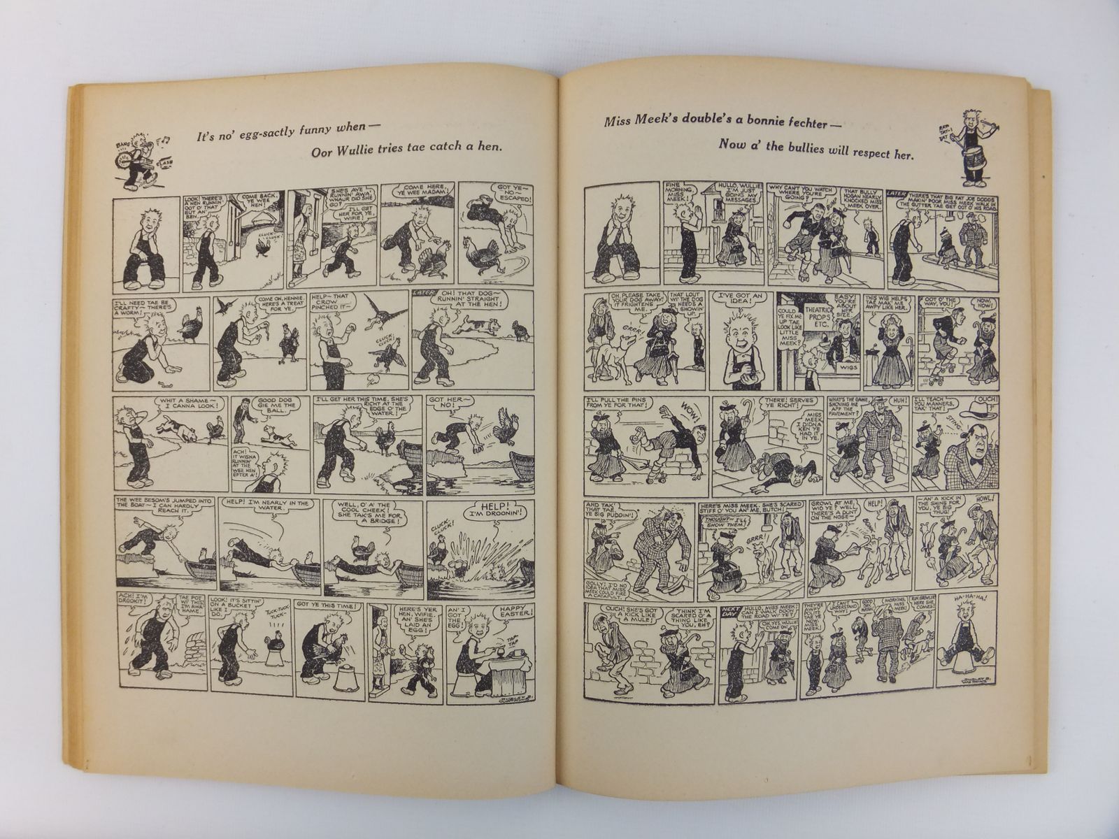 Very good condition. Blue spine, red pictorial card wraps. Front covers shows Wullie with paint pot and brushes. B/w comic strips. Published in 1958 as the 1959 annual.