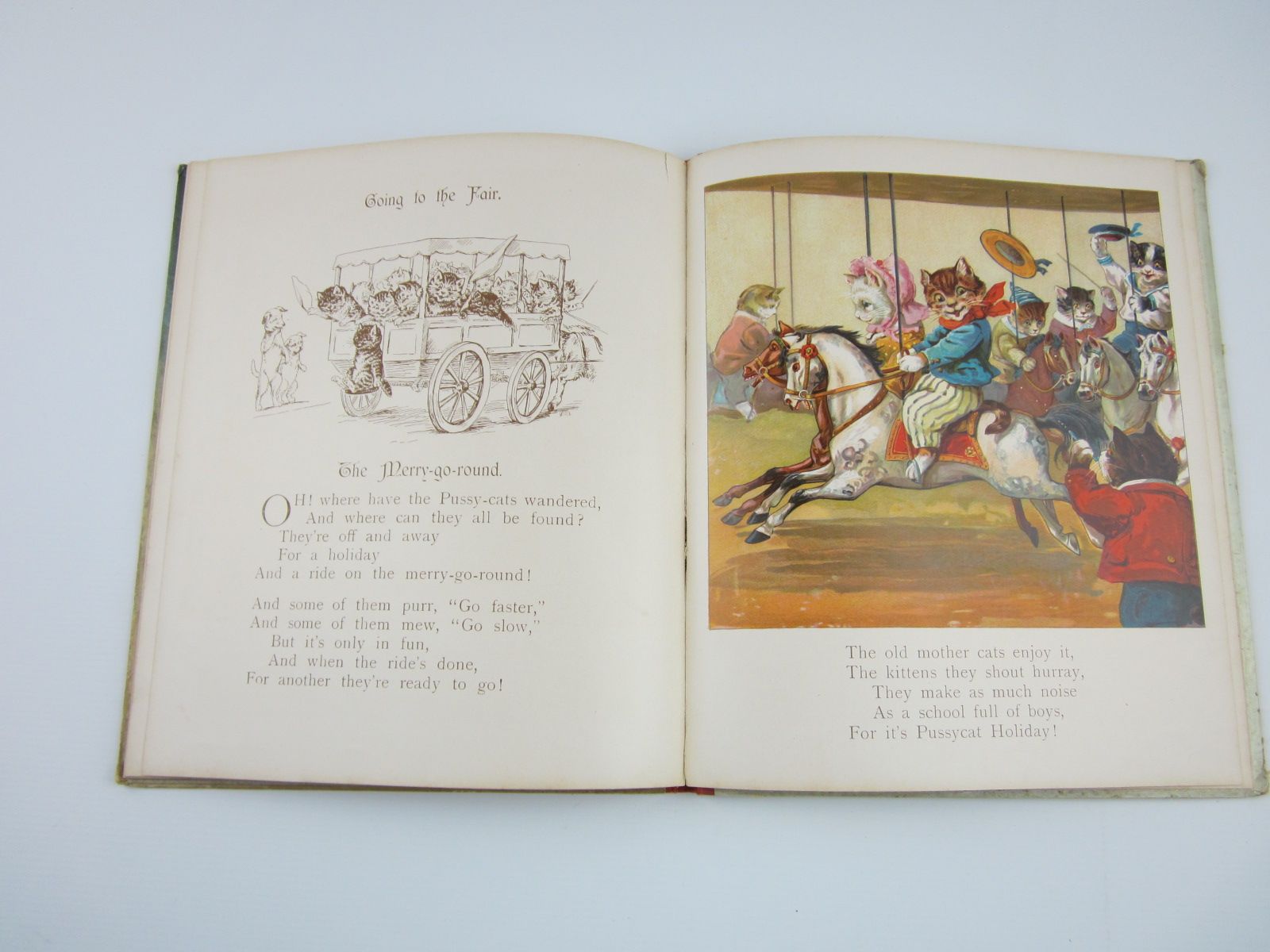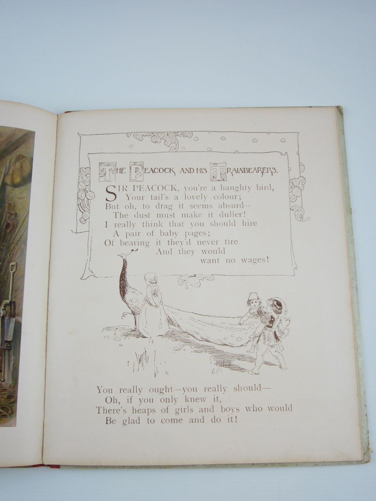 Very good condition. Red cloth spine. Pictorial front board. Blue floral patterned endpapers. Chromolithograph and b/w illustrations. Rhyming text. Nister No: 2335