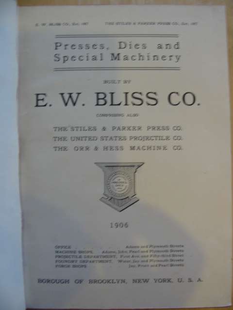 PRESSES, DIES AND SPECIAL MACHINERY BUILT BY E.W. BLISS CO.