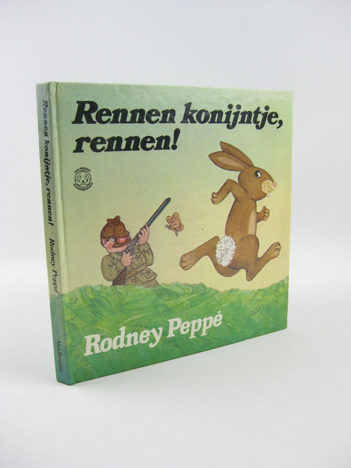 Very good condition. Dutch edition of Run Rabbit, Run!. Square format. Glazed pictorial boards.
