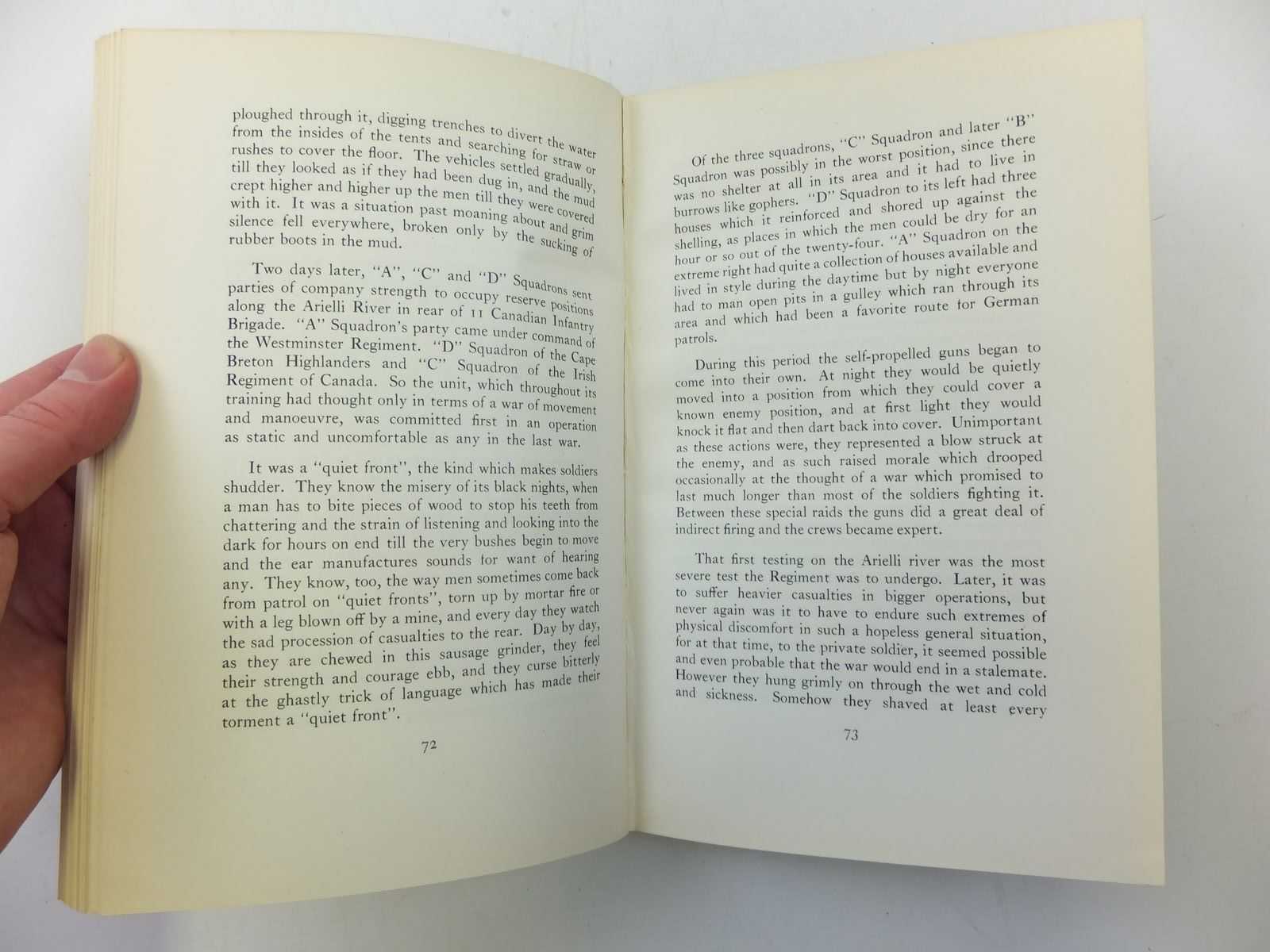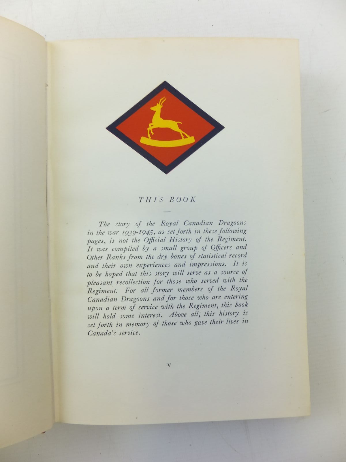 Slightly better than very good condition. The story of the Royal Canadian Dragoons in the second world war. Red cloth spine, blue boards, gilt titles. B/w photos, colour maps. 233 pages.