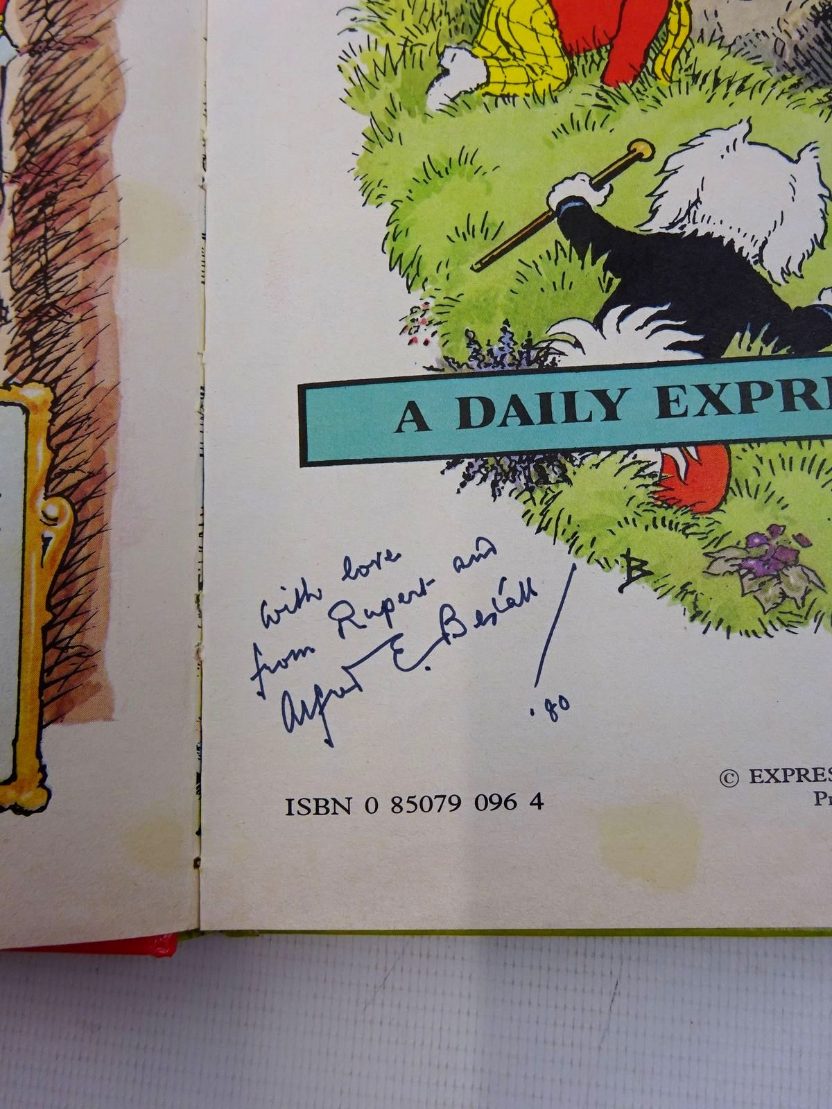 SIGNED by Alfred Bestall 'With love from Rupert and Alfred E. Bestall '80' to title page. Bestall was a close neighbour of the previous owner's Aunt. Tiny nick to base of spine. Corners lightly rubbed. Price-cut. NOT inscribed. A few minor marks to title page and contents page else contents clean.