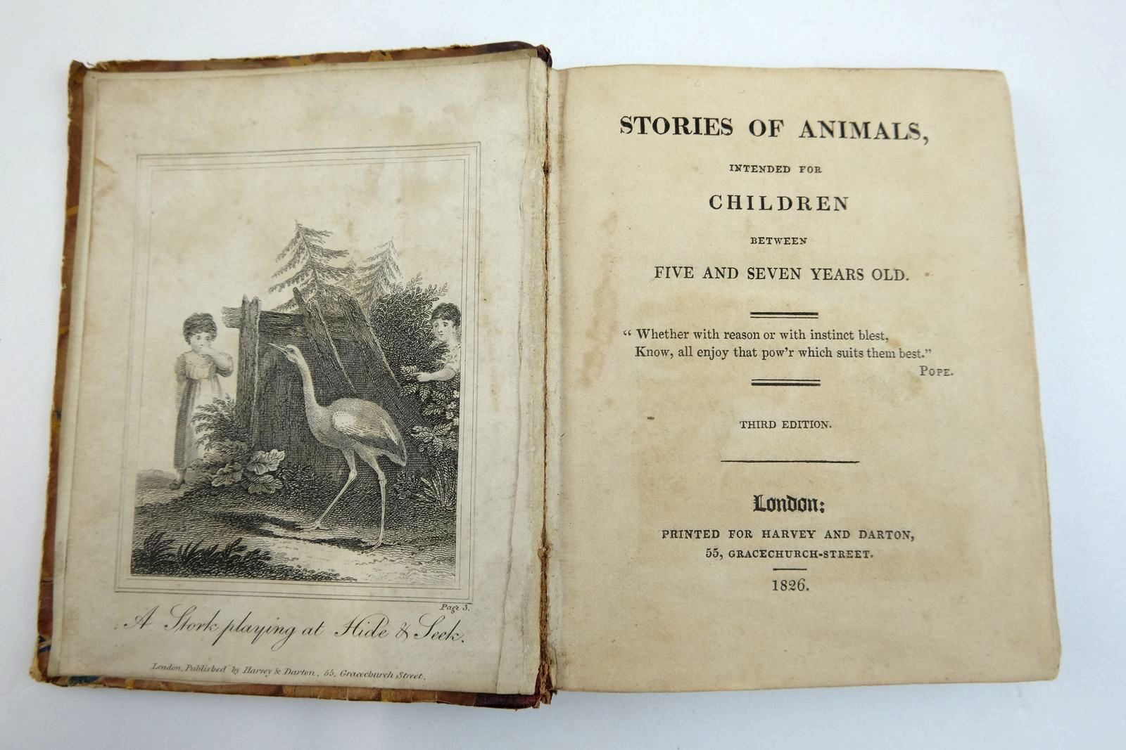 Good condition. Small format. Red leather spine. Marbled boards. 8 b/w plates. Stories Of Animals Intended for Children Between Five and Seven Years Old. B/w illustrations.
