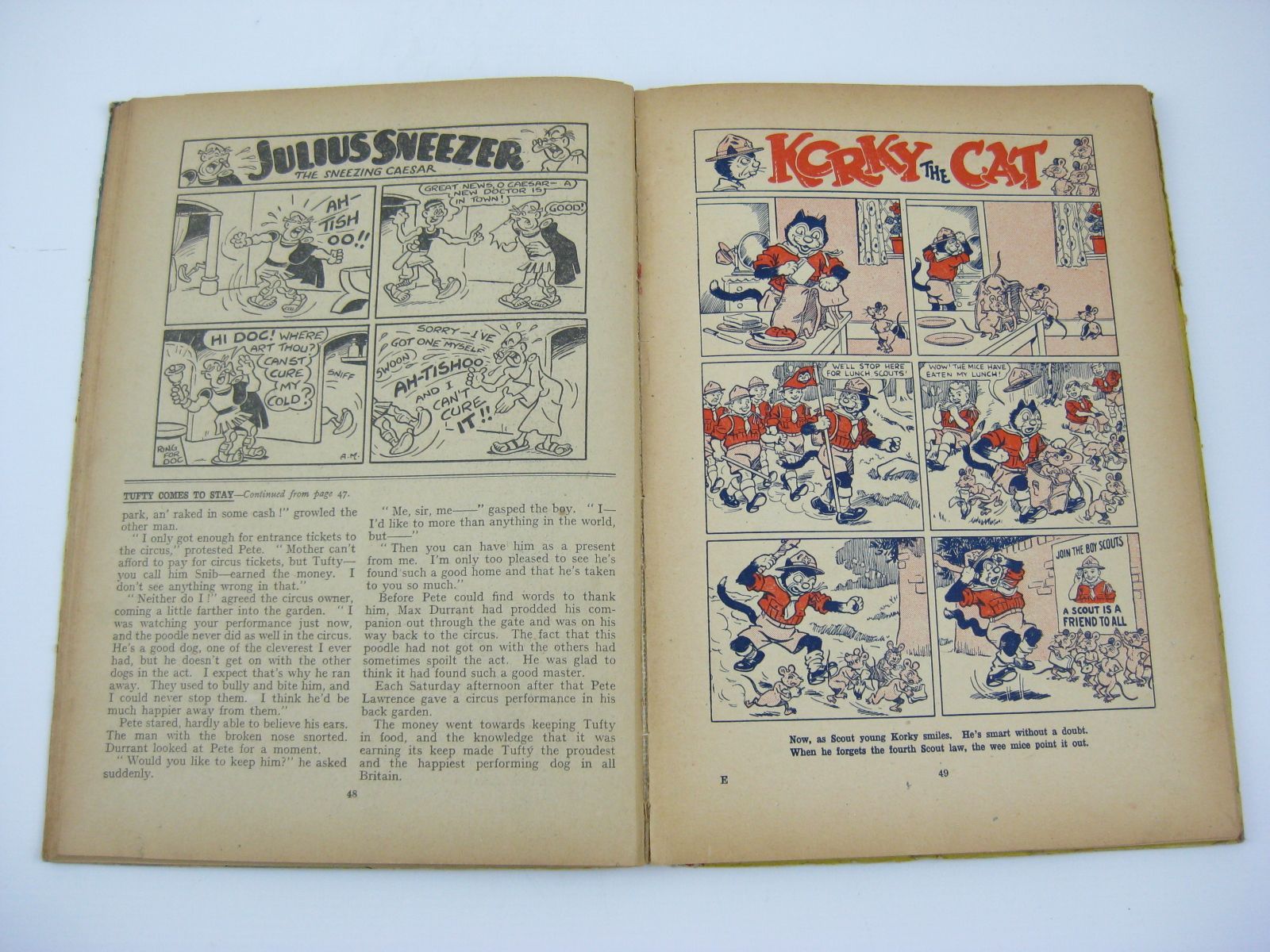 Slightly better than good condition. Front cover shows Dandy characters at the seaside with Korky pouring boiling water from a kettle into the sea. Rear cover shows Danny Longlegs. 127pp.