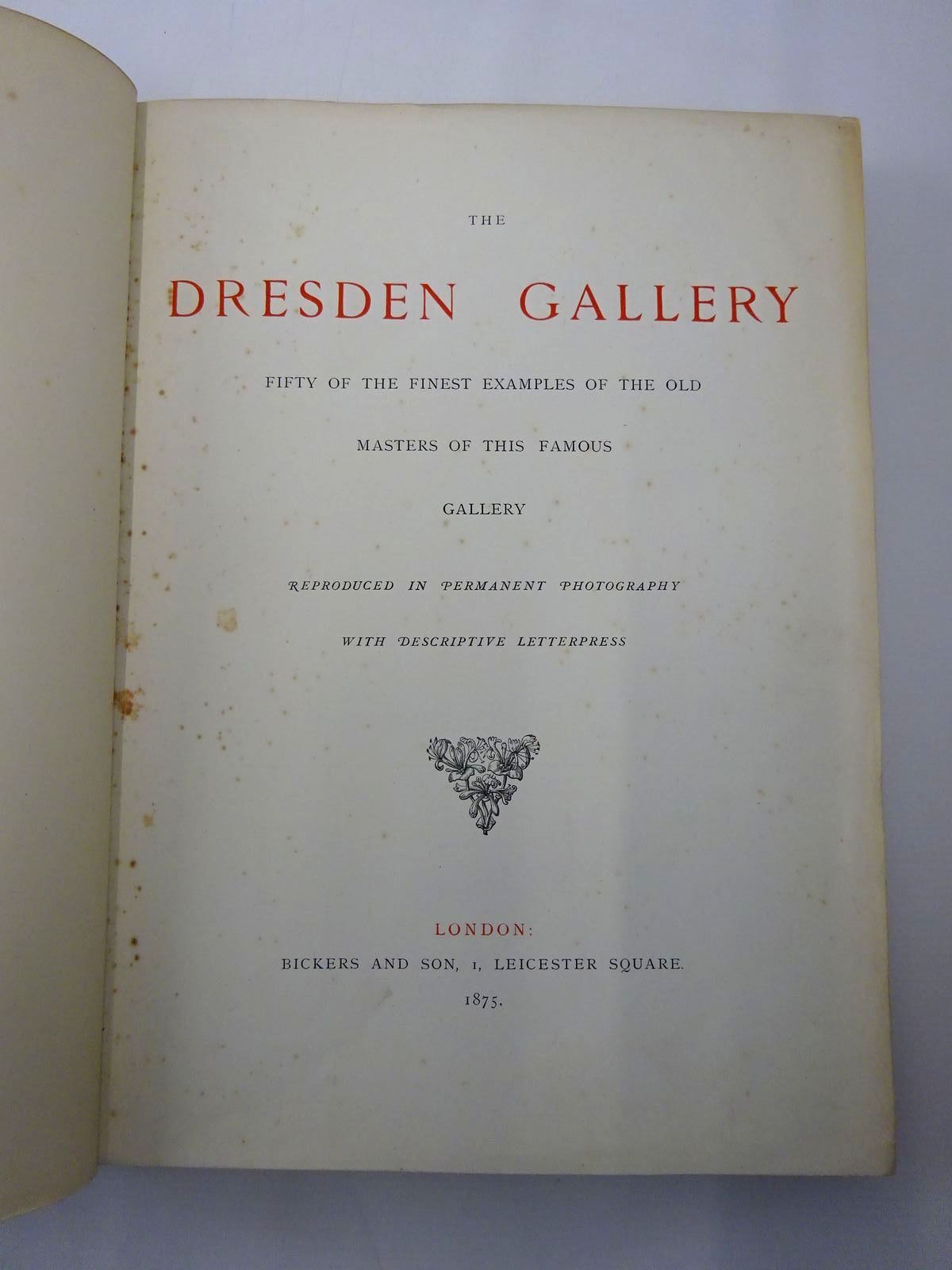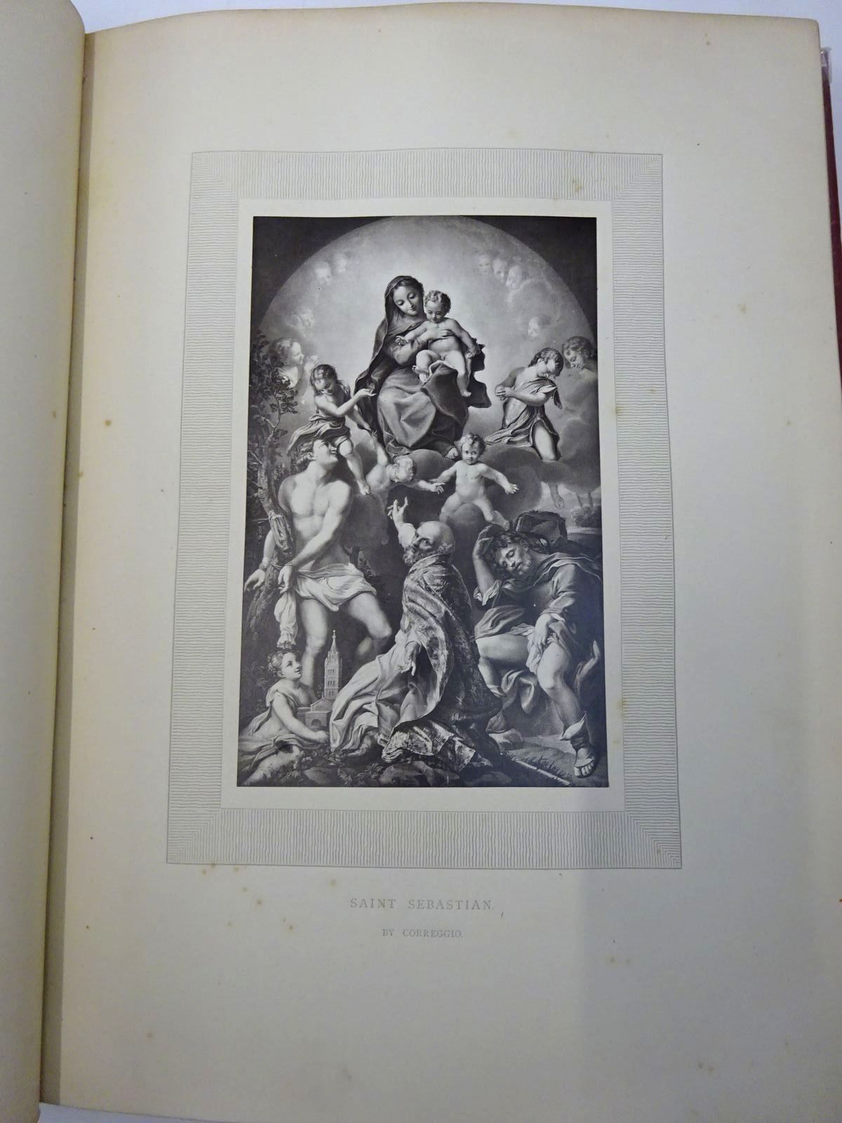 Almost very good condition. Very large format. Red, black and gilt elaborately decorated cloth. 50 of the finest examples of the old masters in mounted b/w plates. All edges gilt.