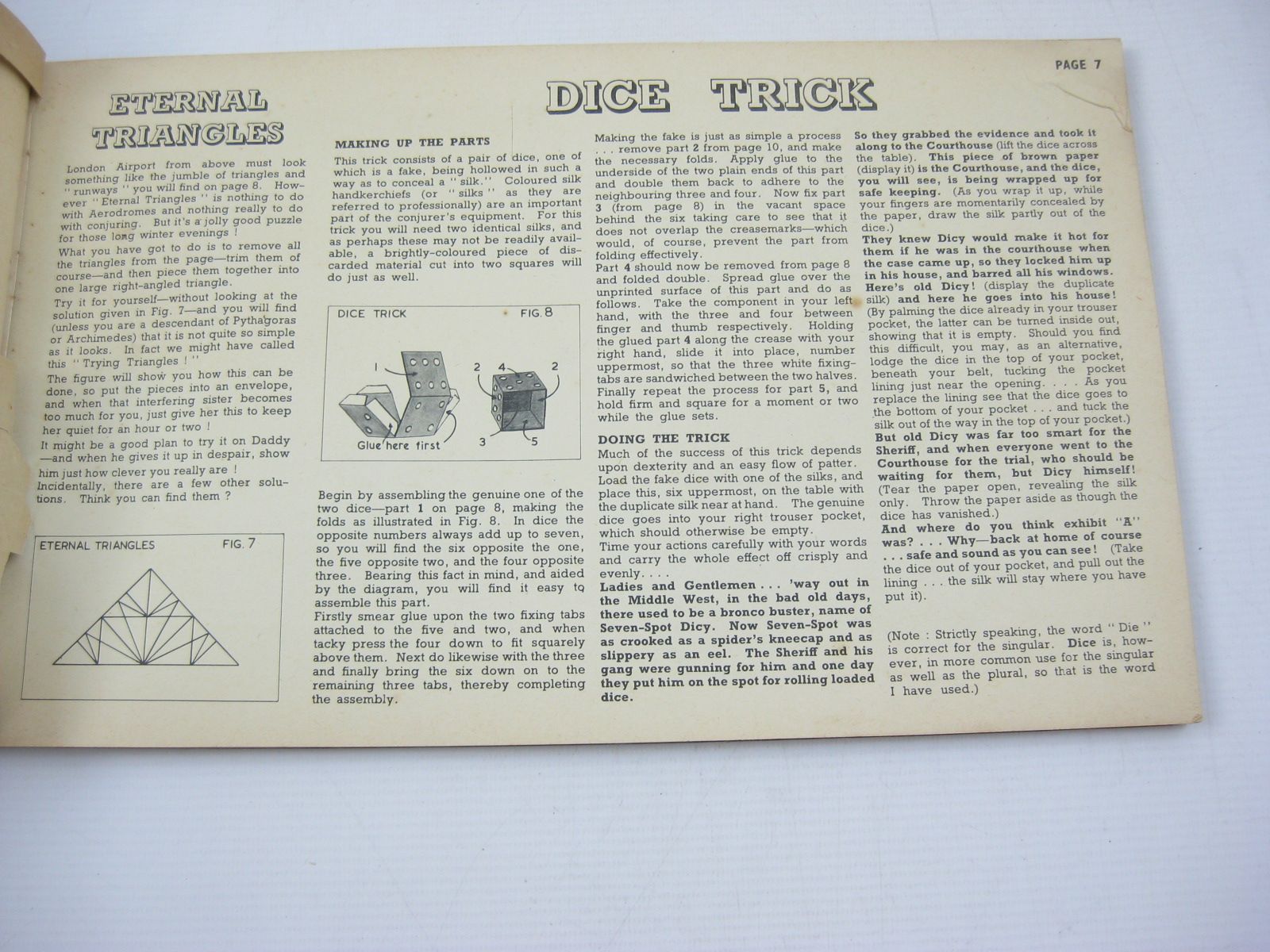 Good condition. 15 models for you to make (press out and assemble)! Large oblong format (8.5 x 14.25"). Cardwraps, red spine and front cover. Text pages between the press-out parts showing you how to make the models and perform the tricks.