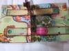 Very good condition. Large format. Glazed pictorial boards. This off-the-wall nine-hole course comes complete with everthing that you'd find at a full-sized miniature golf course. Two putters, 3 brightly coloured balls and even a scorecard!