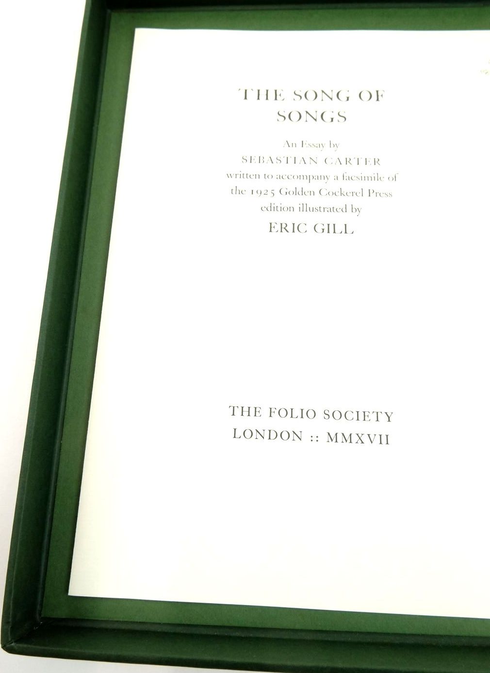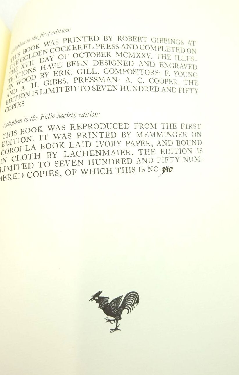 Fine condition in a fine dustwrapper. Called by many the Canticle of Canticles. Facsimile of the 1925 Golden Cockerel Press edition. Limited to 750 numbered copies. Contained in a solander slipcase and accompanied with an essay by Sebastian Carter. White cloth, gilt title to spine. B/w illustrations. 42 numbered pages.