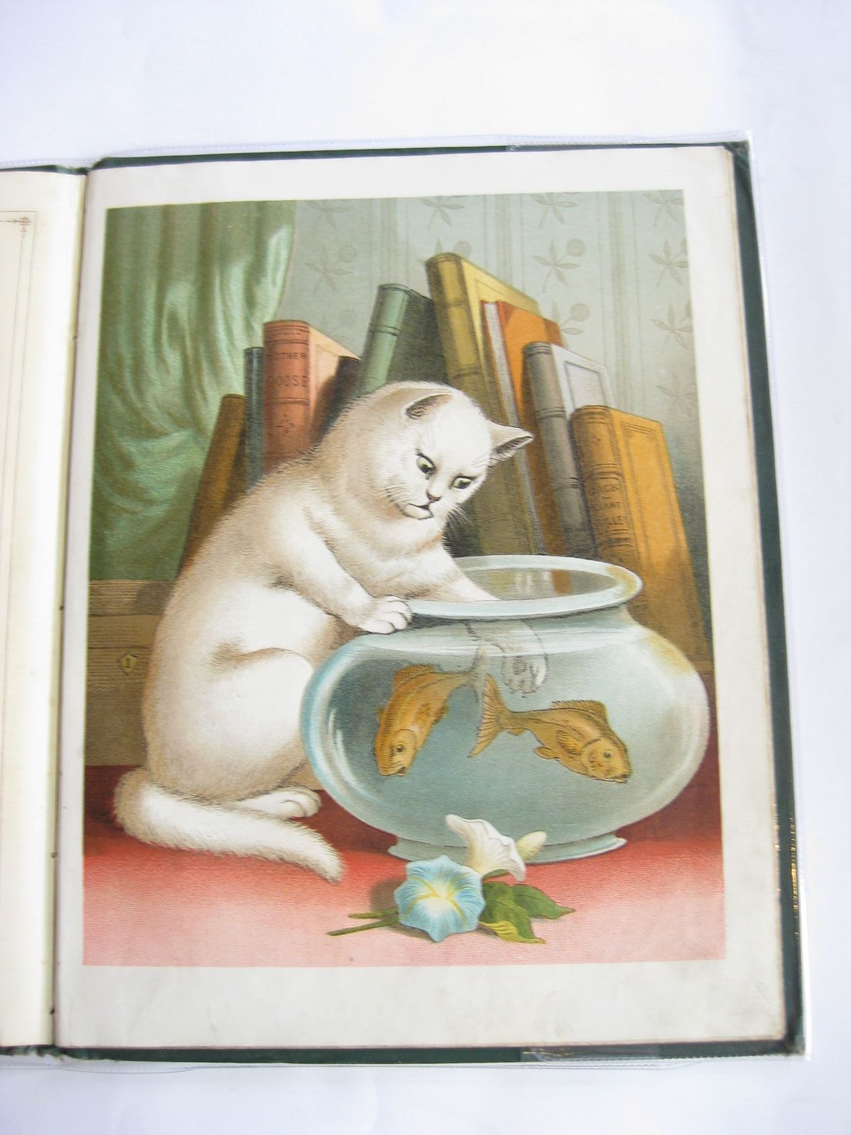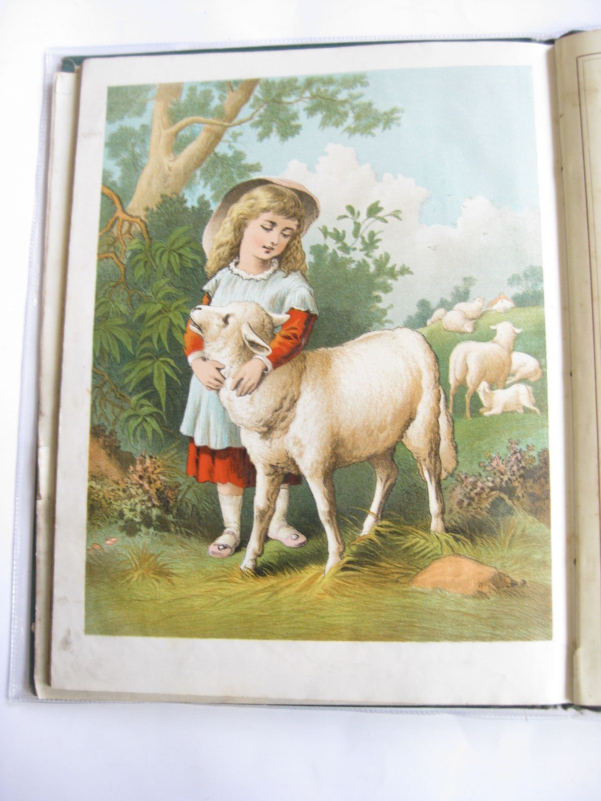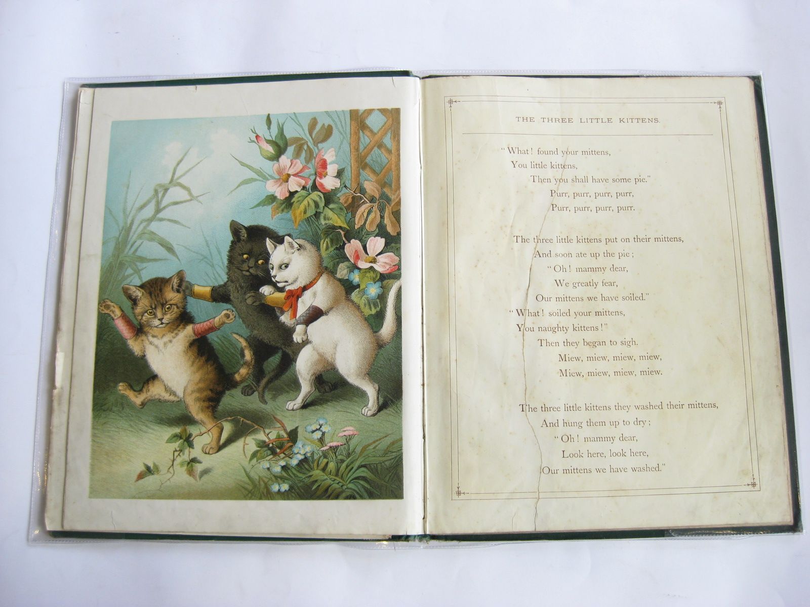Good condition. Coloured picture book for the nursery. Large format. Green embossed cloth with gilt title labels and small oval floral onlay to front. 16 chromolithograph illustrations.