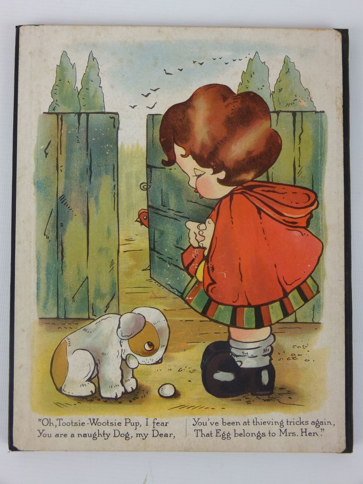 Corners a little worn, corner of onlay to front cover missing. Patch of surface damage along edge of end panel. A little foxing. Illustrations are nice and bright. A charming copy!