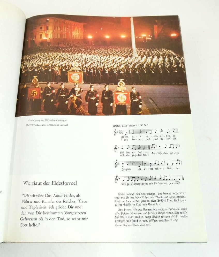 Very good condition in a very good dustwrapper. The book of photographs of the Waffen-SS. Captions in English and German. Beige cloth boards, blue titles. Large, heavy format. B/w photos and colour plates.