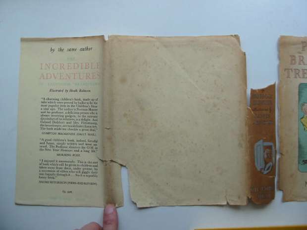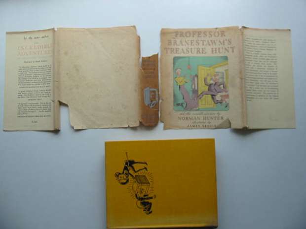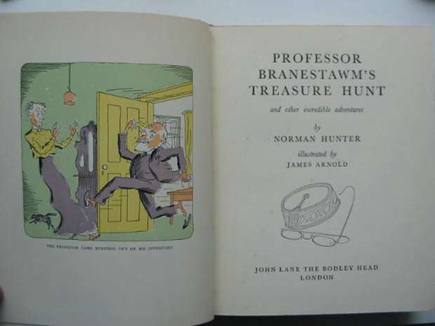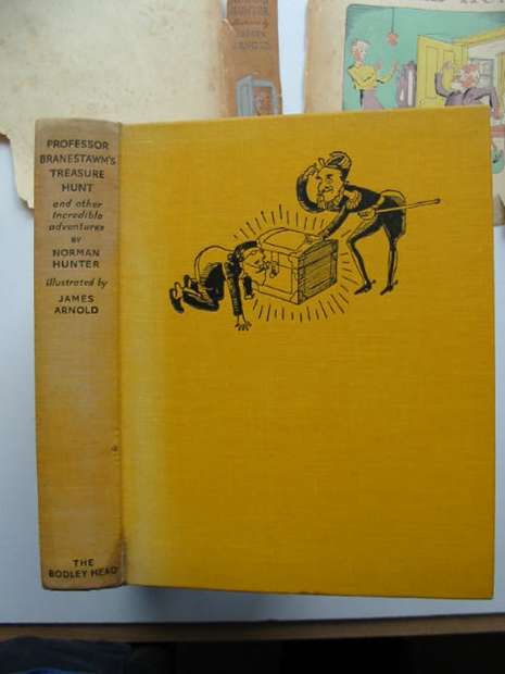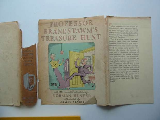 Very good condition in a fair dustwrapper. A terrific treasure hunt with unexpected perils. The Professor's inventions include invisible glass and an expandable house that can be enlarged at will to contain extra guests! Yellow cloth, black title to spine and illustration to front cover. Pictorial endpapers. Colour frontis. B/w text illustrations throughout. 230 pages. The first in the series to be illustrated by James Arnold.