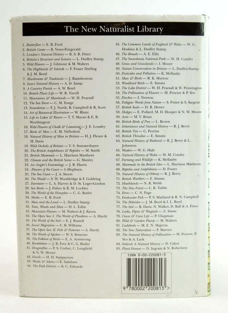 Slightly better than very good condition in a very good dustwrapper. New Naturalist No. 86. A look at how lichens have been used throughout history in medicines, dyes, food and perfumes. What they are and how they grow and reproduce. Colour and b/w photos. Green cloth, gilt title to spine.