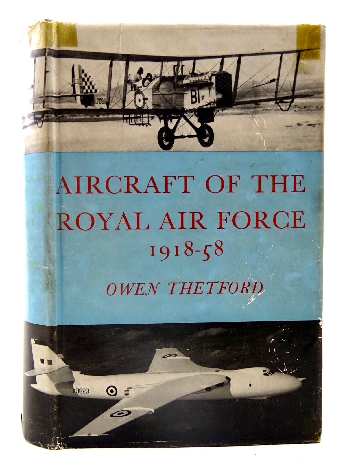 Very good condition in a almost very good dustwrapper. An encyclopaedia of all the aircraft which have served with the Royal Air Force up until 1958. Blue cloth boards, gilt title to spine. B/w photos and diagrams. 533 pages including index. Revised edition.