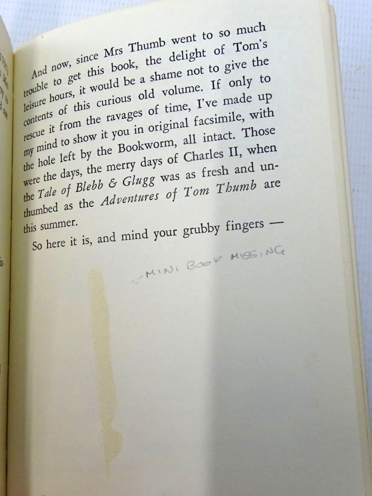 Volume 1 has damp mark and some browning to spine. Creasing to cover edges and corners. Each volume has some marks to outer page edges. Volume 2 is MISSING the miniature book (only glue line can now be seen). Also has inscription in ink to beginning of book.