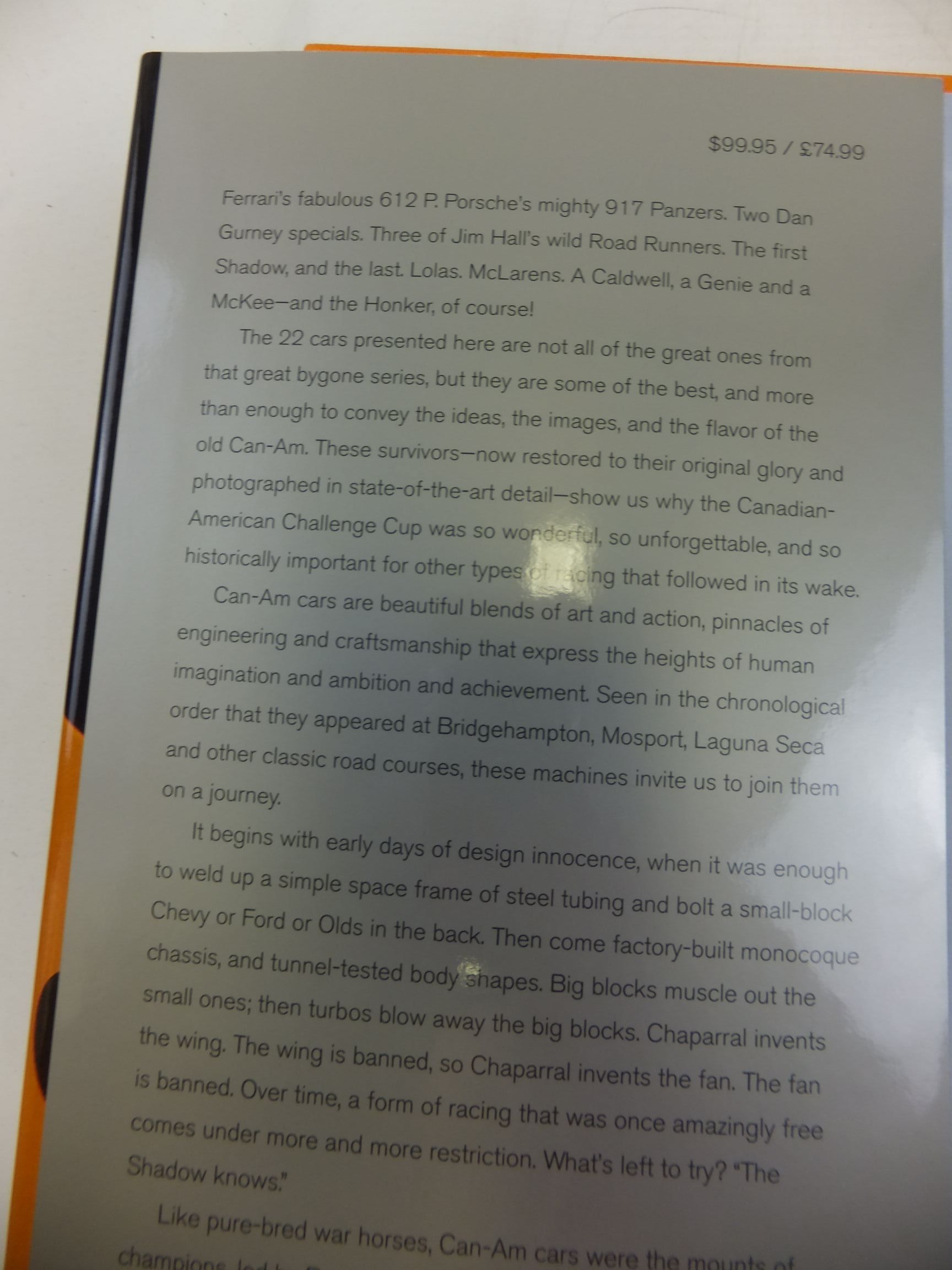 Fine condition in a fine dustwrapper. Photographs by Peter Harholdt. Can-Am lasted only 8 1/2 seasons, from 1966 into 1974, but what ground-shaking, car-shaping years those were. 244 pages.