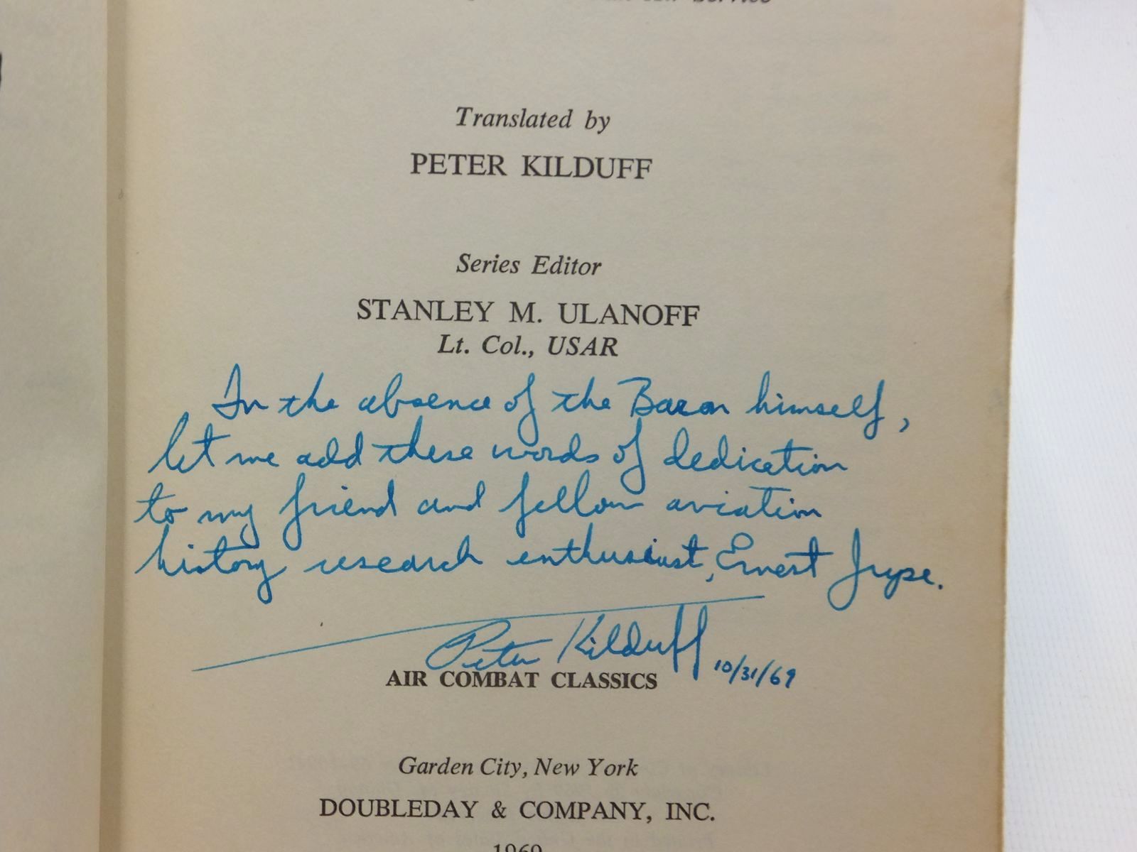 Very good condition in a very good dustwrapper. Translated by Kilduff. A brand new translation, and the first American edition ever, of the autobiography of the most famous air ace of World War I, the famed Red Knight of Germany, Manfred von Richthofen. B/w photos and illustrations.