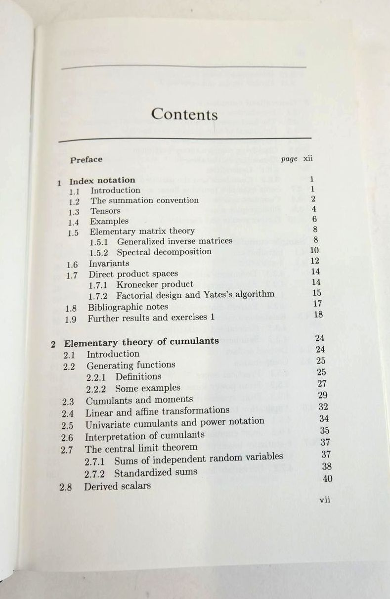 Very good condition. A systematic development of tensor methods in statistics, beginning with the study of multivariate moments and cumulants. Dark green glazed boards with white titles. xv and 285 pages including index.