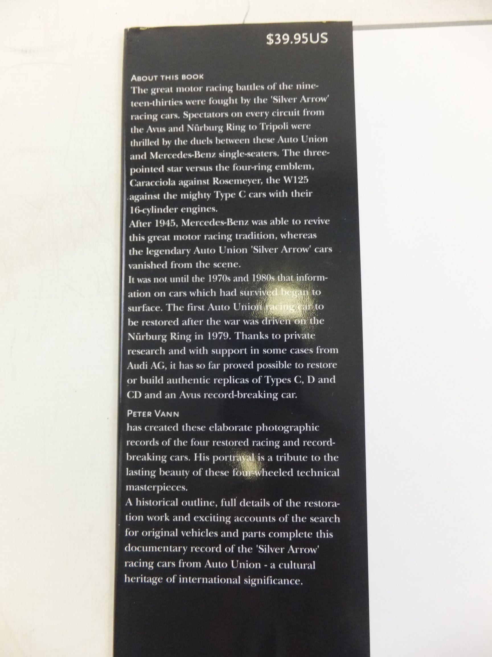 Fine condition in a fine dustwrapper. Peter Vann photographed the restored Auto Union racing and record-breaking cars on the banked curve of the Brooklands track in England. Large format. Colour and b/w photos.