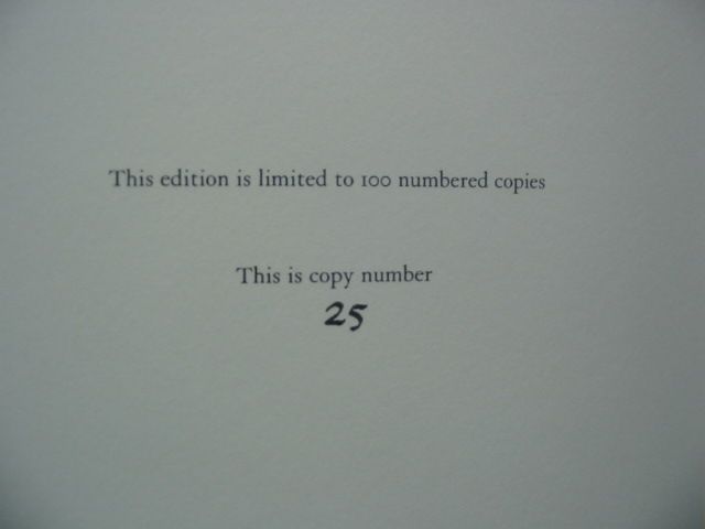 Nearly fine condition. Special Edition. Limited to 100 copies of which this is number 25. Green leather spine with silver title, brown cloth boards with white title label to front. B/w wood engravings.