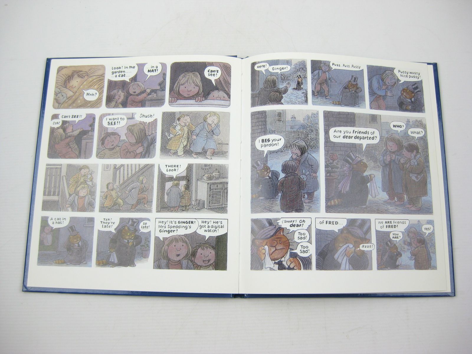 Nearly fine condition. Everyone in the neighbourhood was terribly sad to hear from Nick and Sophie that their cat Fred had died. Late one night they are awakened by a curious 'Meeeyow'. Something baffling was about to begin in the garden which will amaze even the most experienced catwatcher... Blue glazed pictorial boards. Colour illustrations with balloon captions.