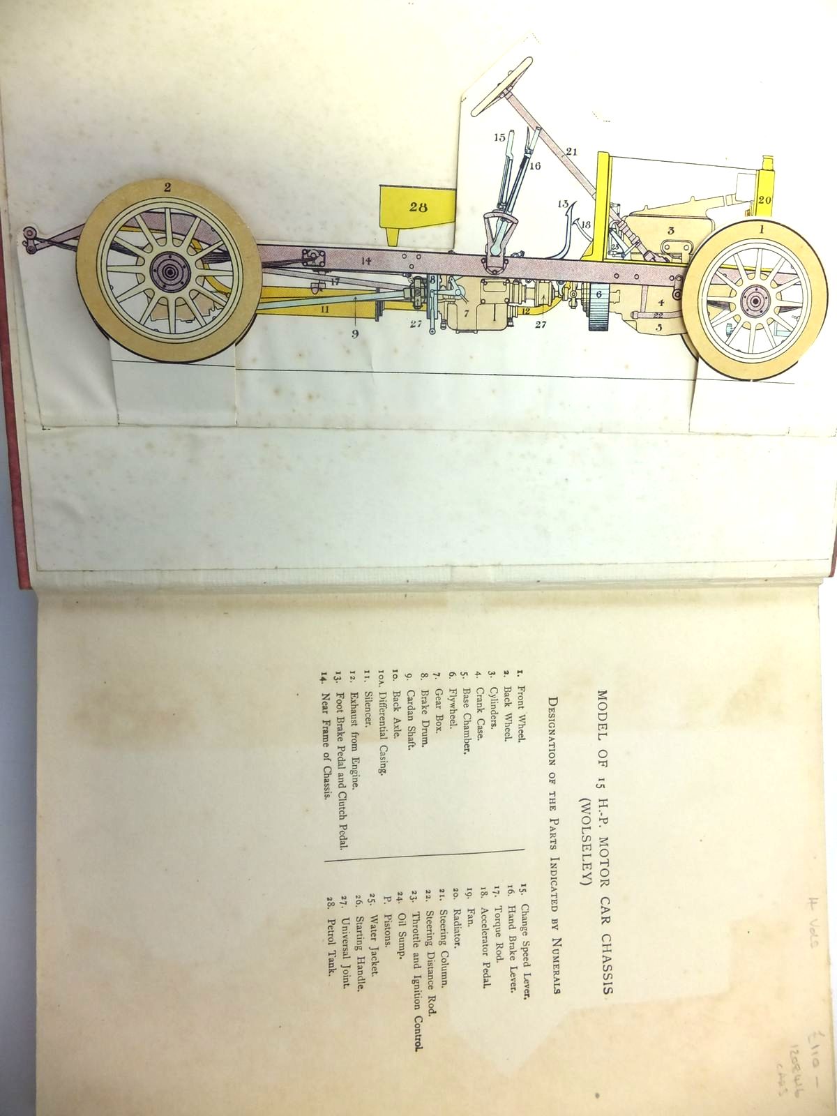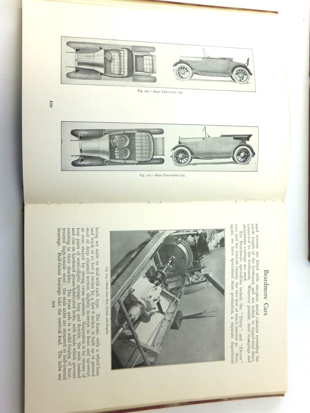 Good condition. A Comprehensive and Authoritative Guide on the Care, Management, Maintenance, and Construction of the Motor Car and Motor Cycle. Four volumes. Three volumes originally published in 1913 plus the later elusive fourth volume. Burgundy cloth, gilt title to spine, black title and embossed illustrations to front. Numerous b/w illustrations and plates. Colour models to pastedowns of Vols I-III.