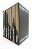 Spines are ALL browned, with a few spots. Some light wear to cover edges. Page edge browning. Slip case is very good - a few marks and some fading.