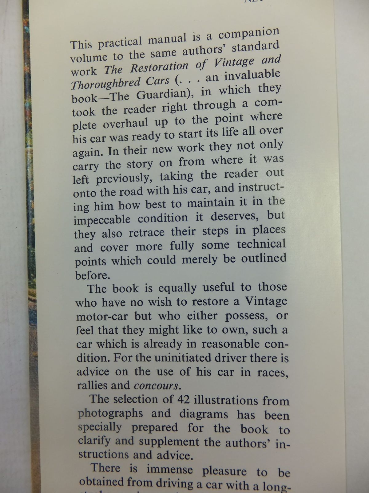 Very good condition in a very good dustwrapper. Companion volume to the same authors' standard work The Restoration of Vintage and Thoroughbred Cars. Black boards, gilt title to spine and vignette to lower front board. B/w photos and illustrations.