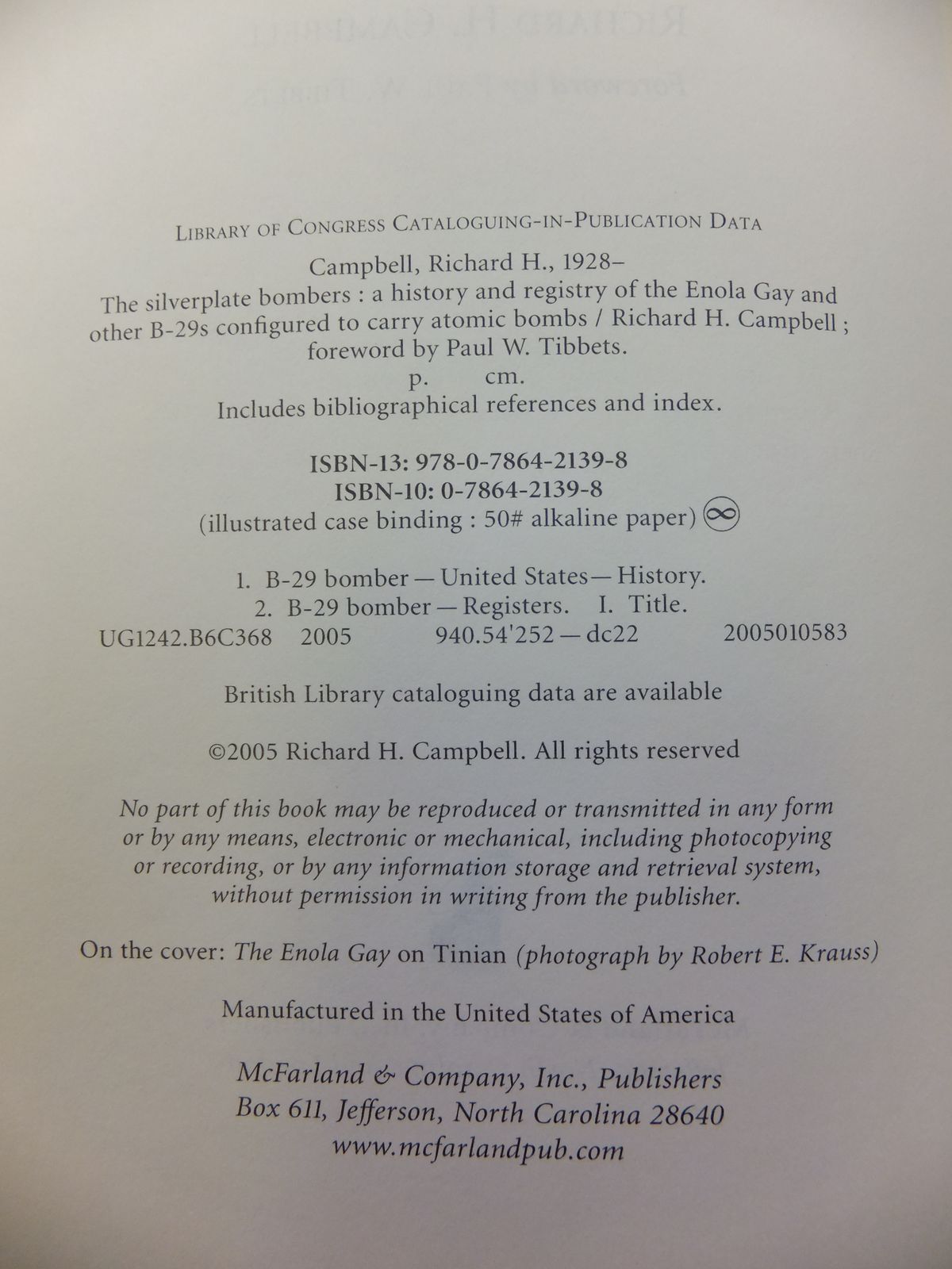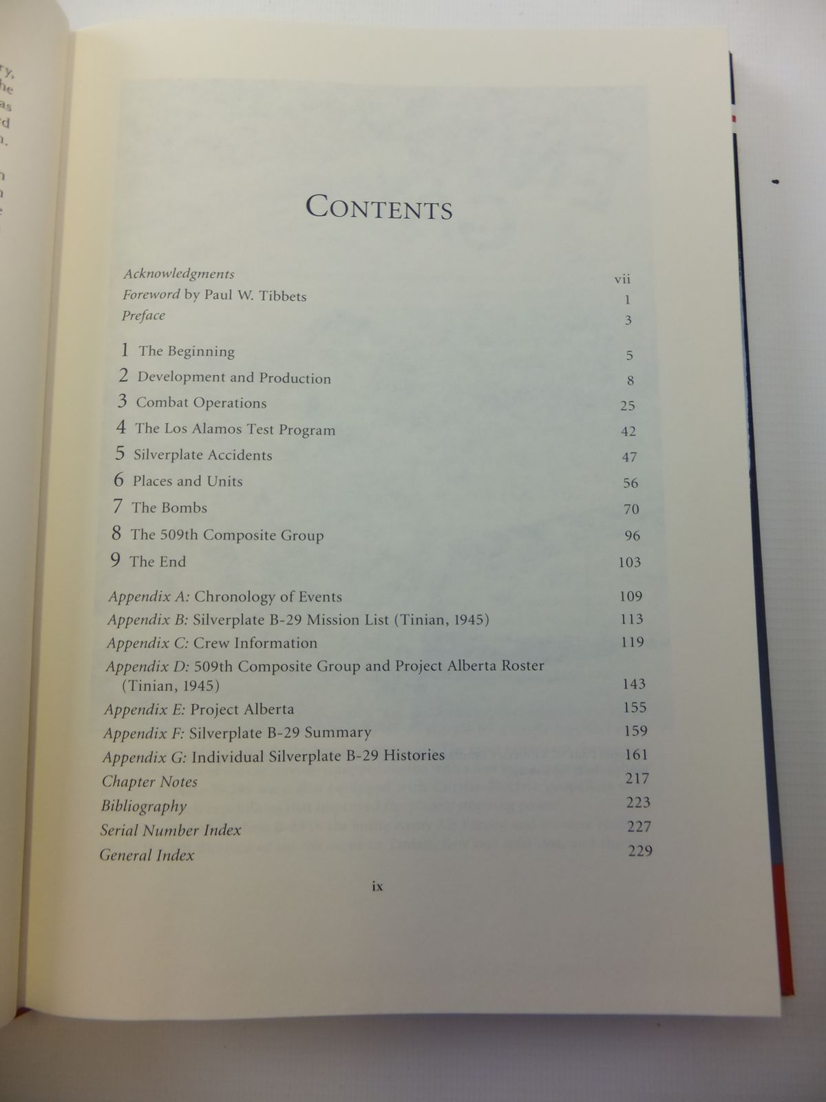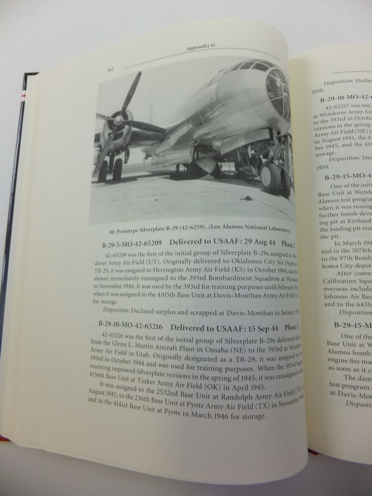 Fine condition. A History and Registry of the Enola Gay and Other B-29s Configured to Carry Atomic Bombs. The development and delivery of the Silverplate B-29 bomber, the remarkable airplane employed to release the first atomic bomb on Hiroshima in 1945. Glazed pictorial boards. B/w photos.