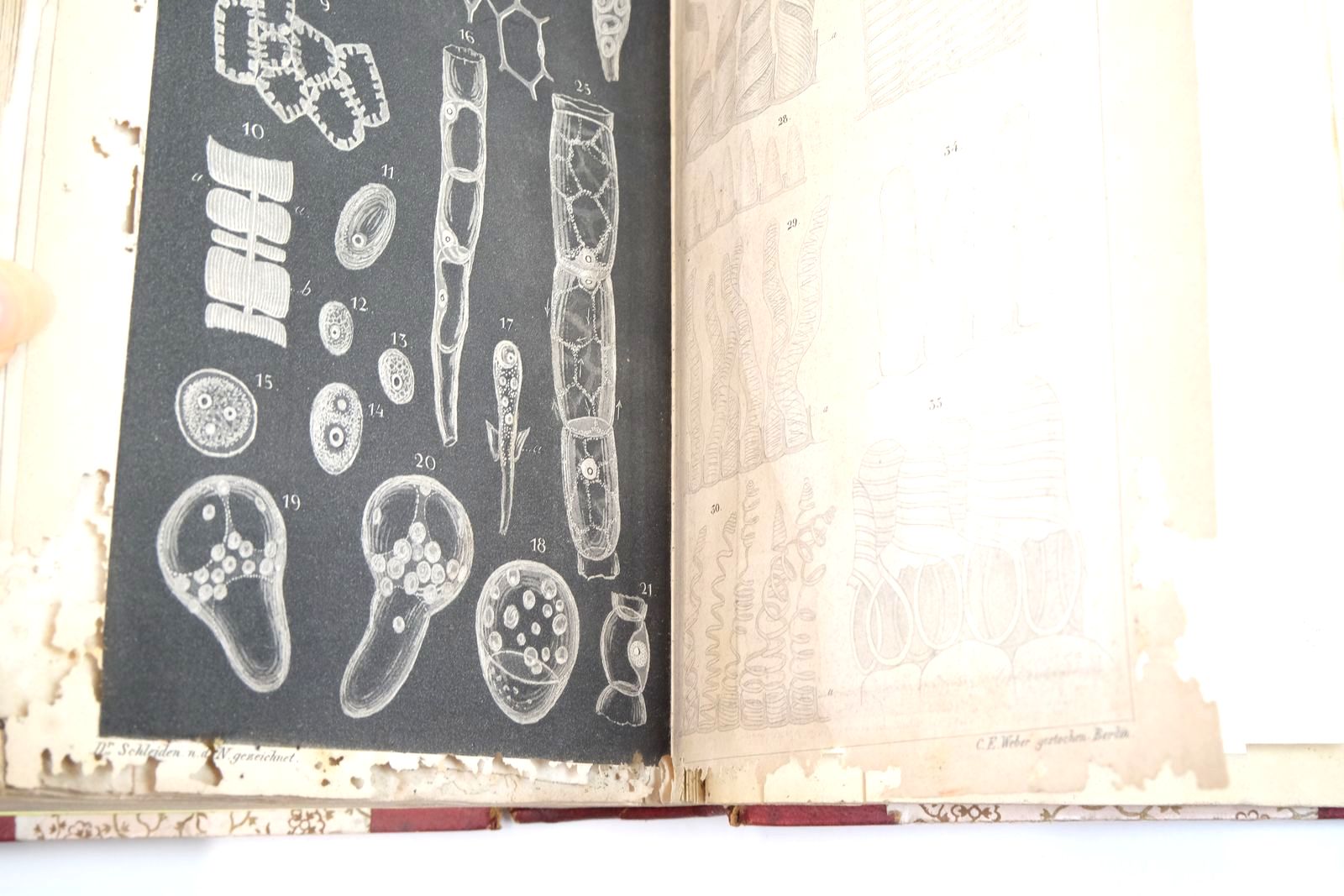 Scuffing and wear to covers; some marks. Tear hole to leather spine on Volume I - a bit missing. All plates are present, but with some damp staining. Worm damaged to margins of a few plates in Volume II. Names in ink to front pastedowns. Foxing and some browning.