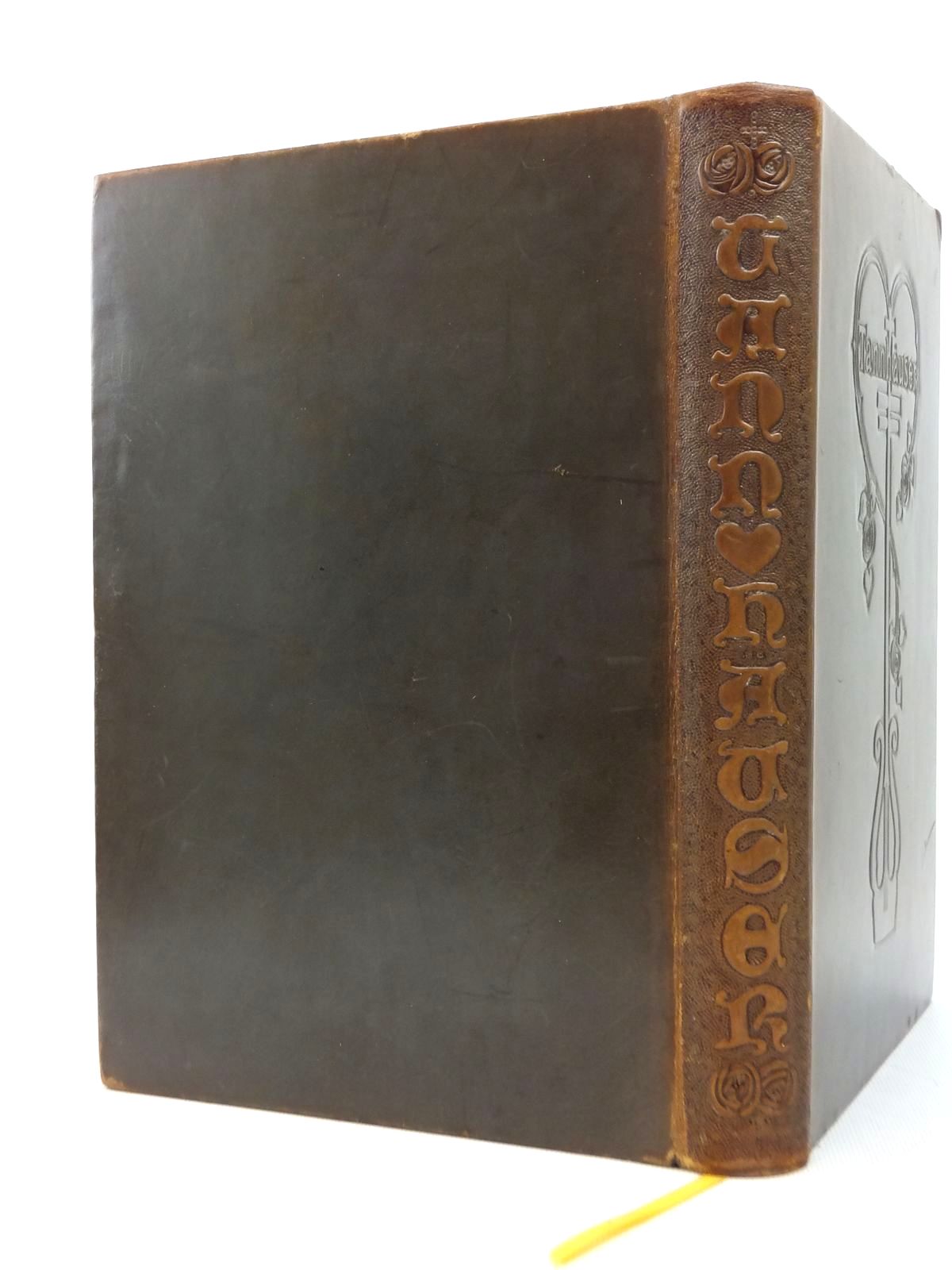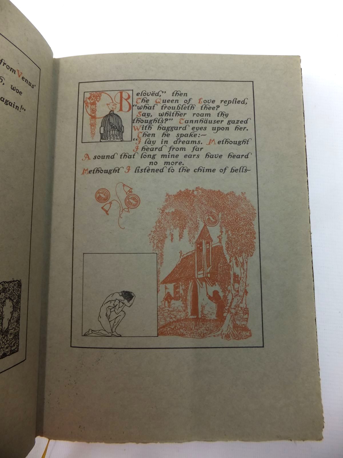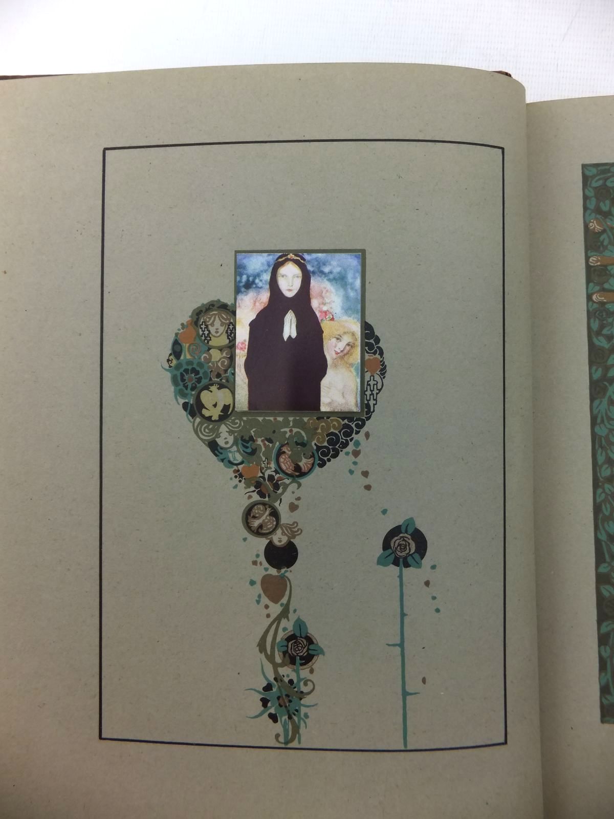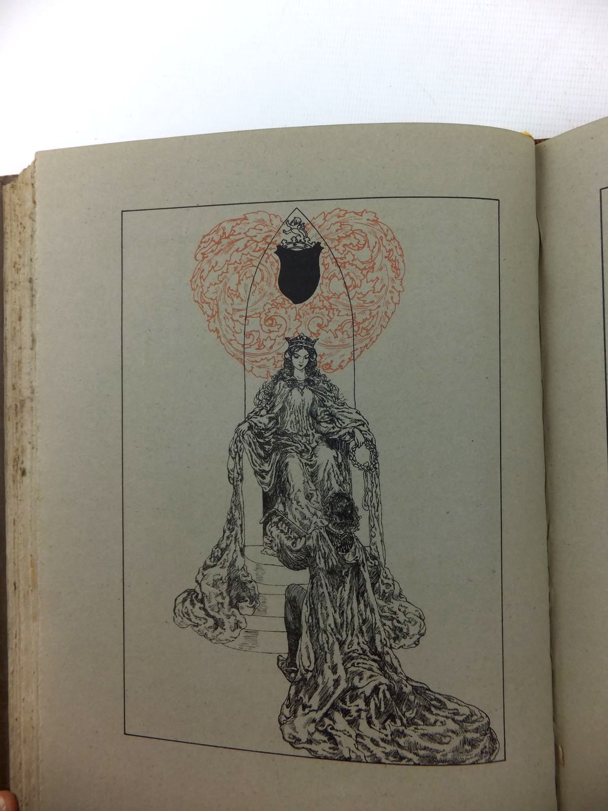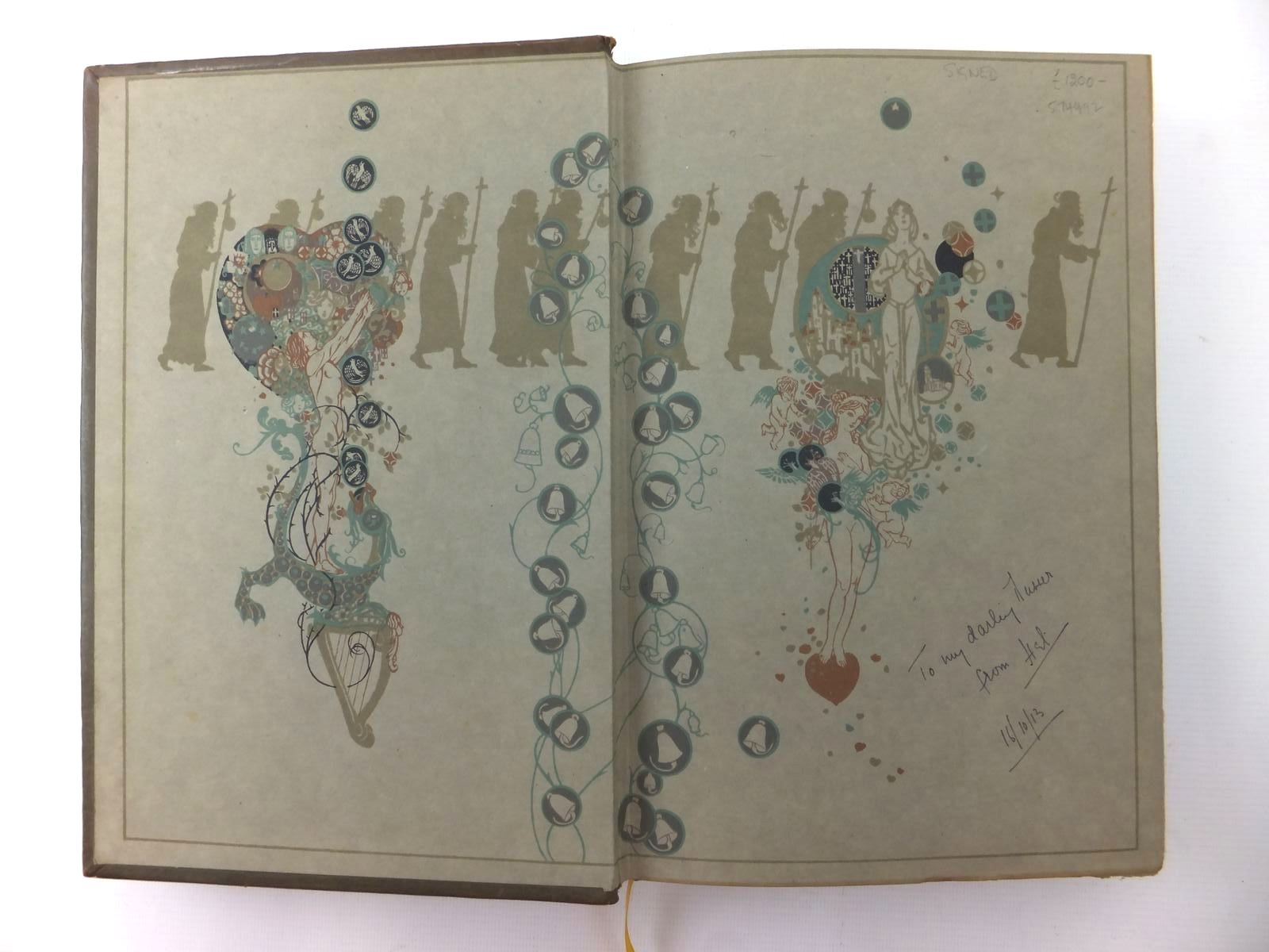 Slightly better than very good condition. Limited to 525 signed and numbered copies. Dark green calf binding with tooled design and title on front cover. Tooled title and decoration to spine. 16 beautiful tipped-in colour plates. Printed on thick grey paper, every page has lithographed orange or black illustrations. Endpapers and prelims are illustrated in multiple colours, predominantly blue. Top edge gilt.