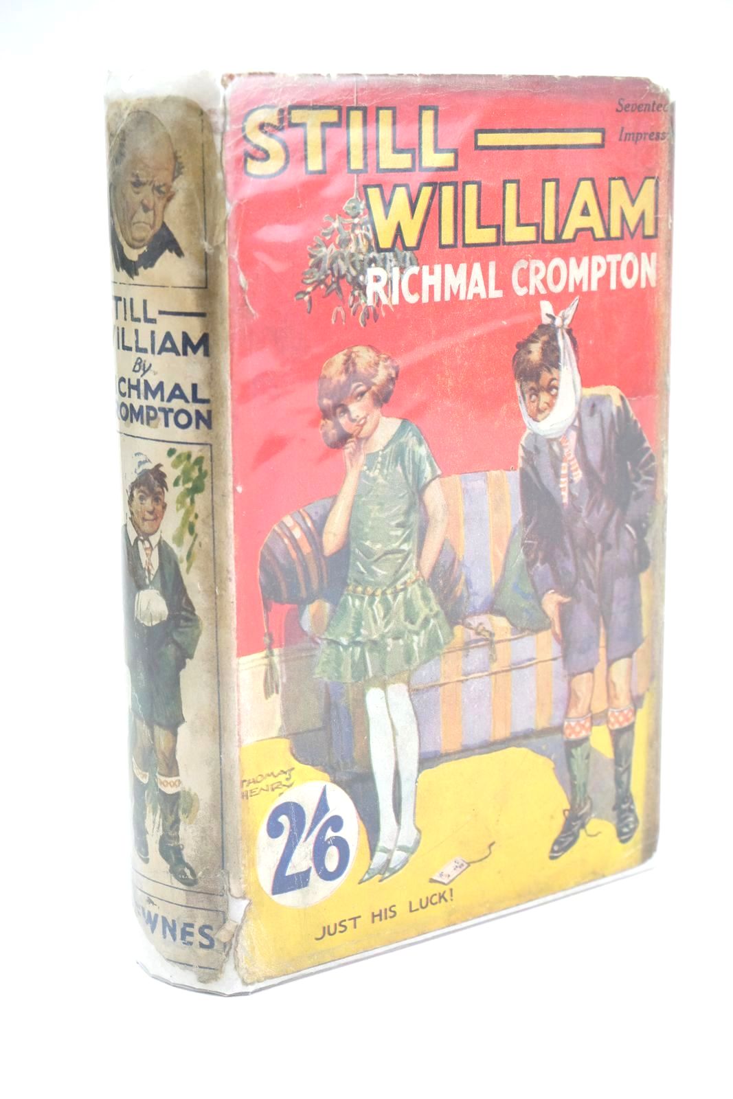 Green boards, gilt vignette of William to spine and gilt lettering to spine/front cover. 248 pages. B/w illustrations to text throughout. Spine and corners bumped. Some browning to top and tail of spine. Prize-plate to front free-endpaper. Some light foxing to contents. Dustwrapper is edge worn and creased with loss to top and tail of spine and slightly grubby/browned to rear panel and faded to spine.