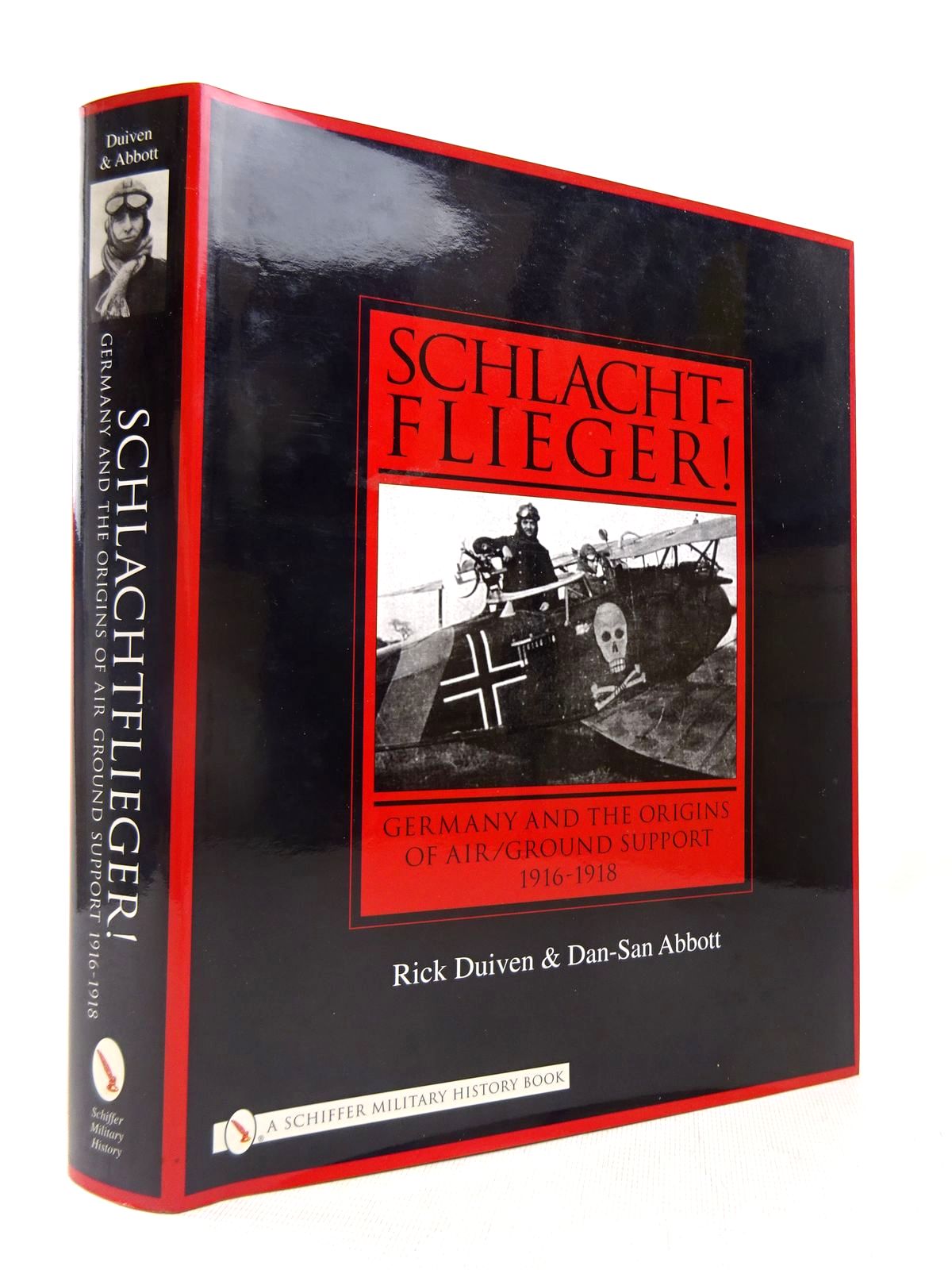 Nearly fine condition in a nearly fine dustwrapper. The history of the Schutzstaffein from their formation as escort aircraft, to their being renamed Schlachtsaffein and their role as infantry support aircraft. Red and black pictorial glazed boards. Also includes a near complete compilation of the crew members, airfields, Schlachtgruppe formations, and combat logs of these thrity-eight units. B/w illustrations and colour illustrations of unit markings. 400 pages including index.