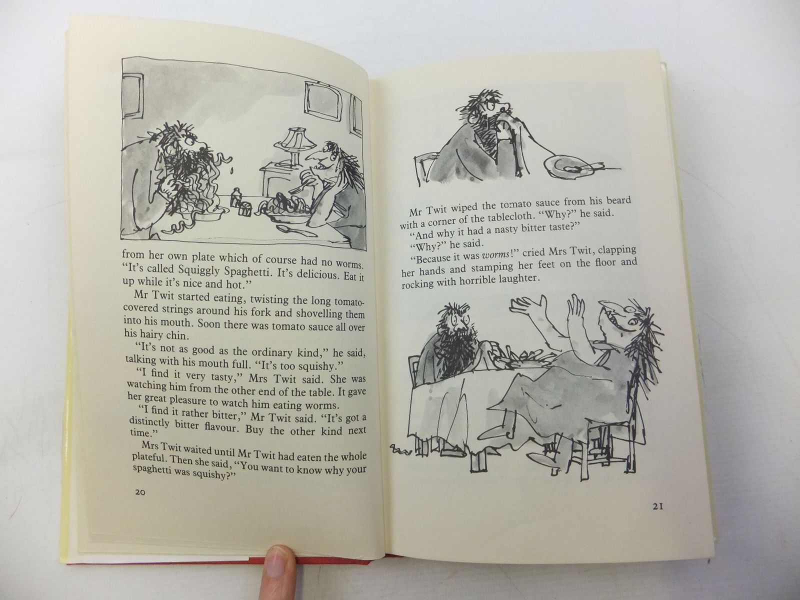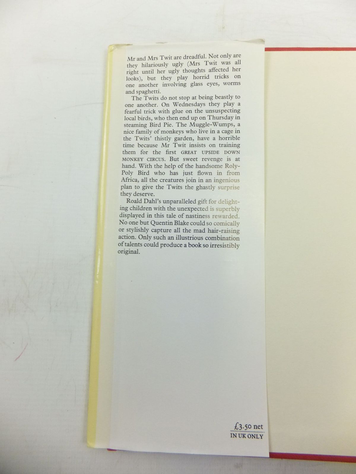 Slightly better than very good condition in a very good dustwrapper. Red boards, gilt title to spine. B/w illustrations of the dreadful Twit family.