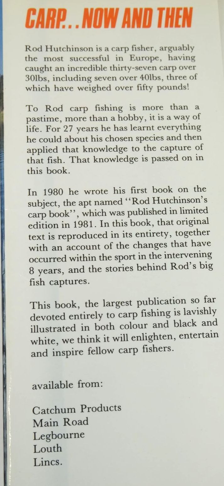 Very good condition in a very good dustwrapper. Includes the entire text of Rod Hutchinson's Carp Book (1981) together with an account of the changes in carp fishing in the intervening 8 years. Brown boards, gilt title to spine. Colour and b/w photos.