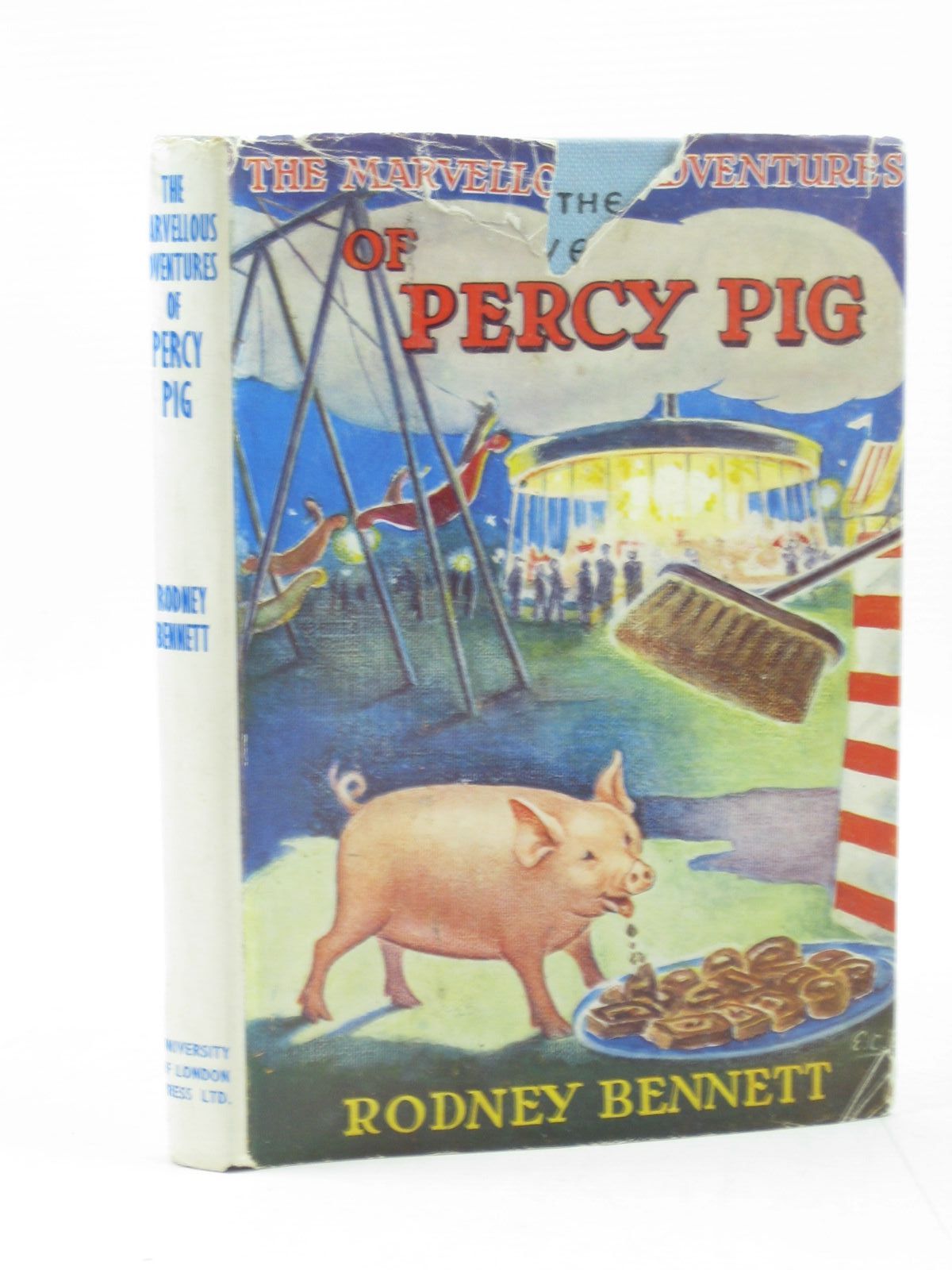 Almost very good condition in a good dustwrapper. The story of Percy, a proud, plump little pink pig who wanted to see the wide world and ran away from home to do so. Light blue boards with black title to spine and front and pig vignette to front. Colour frontis and b/w illustrations. 127 pages.