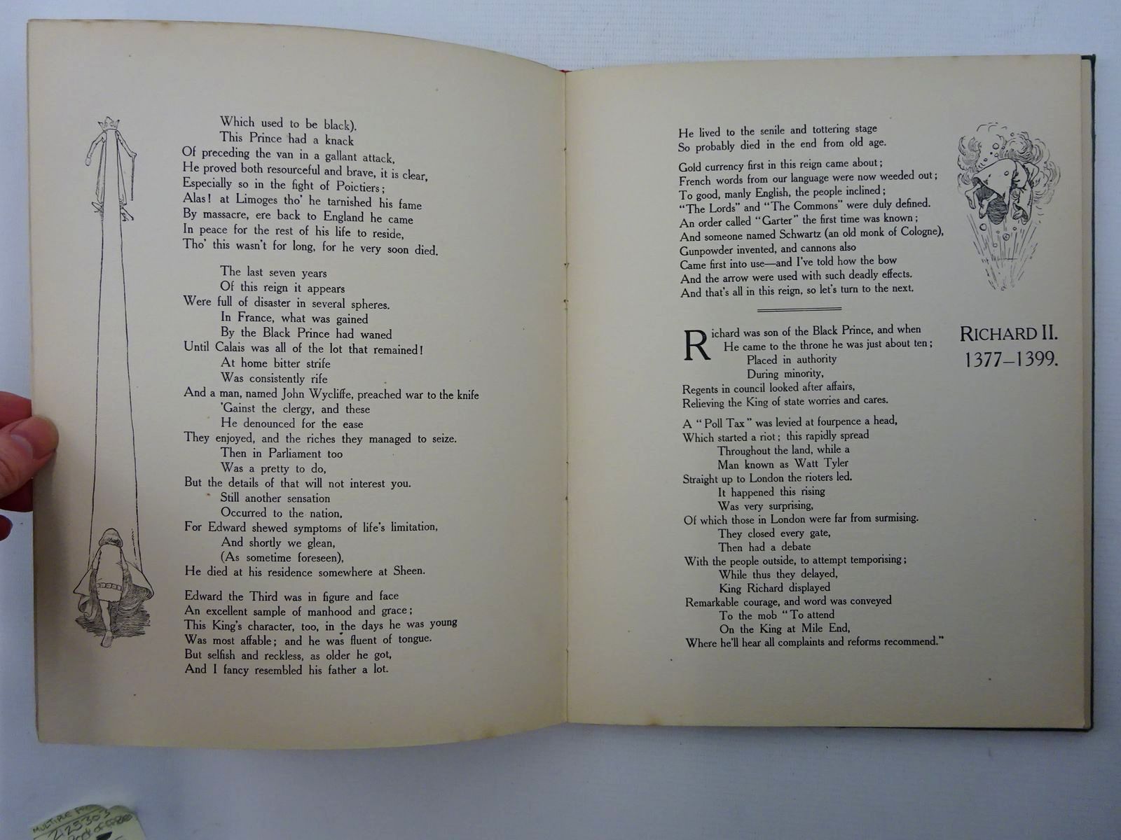 Almost very good condition. Humourous rhymes of historical times with colour pictures and b/w text illustrations throughout. Pictorial blue boards, with red cloth spine. Large format.