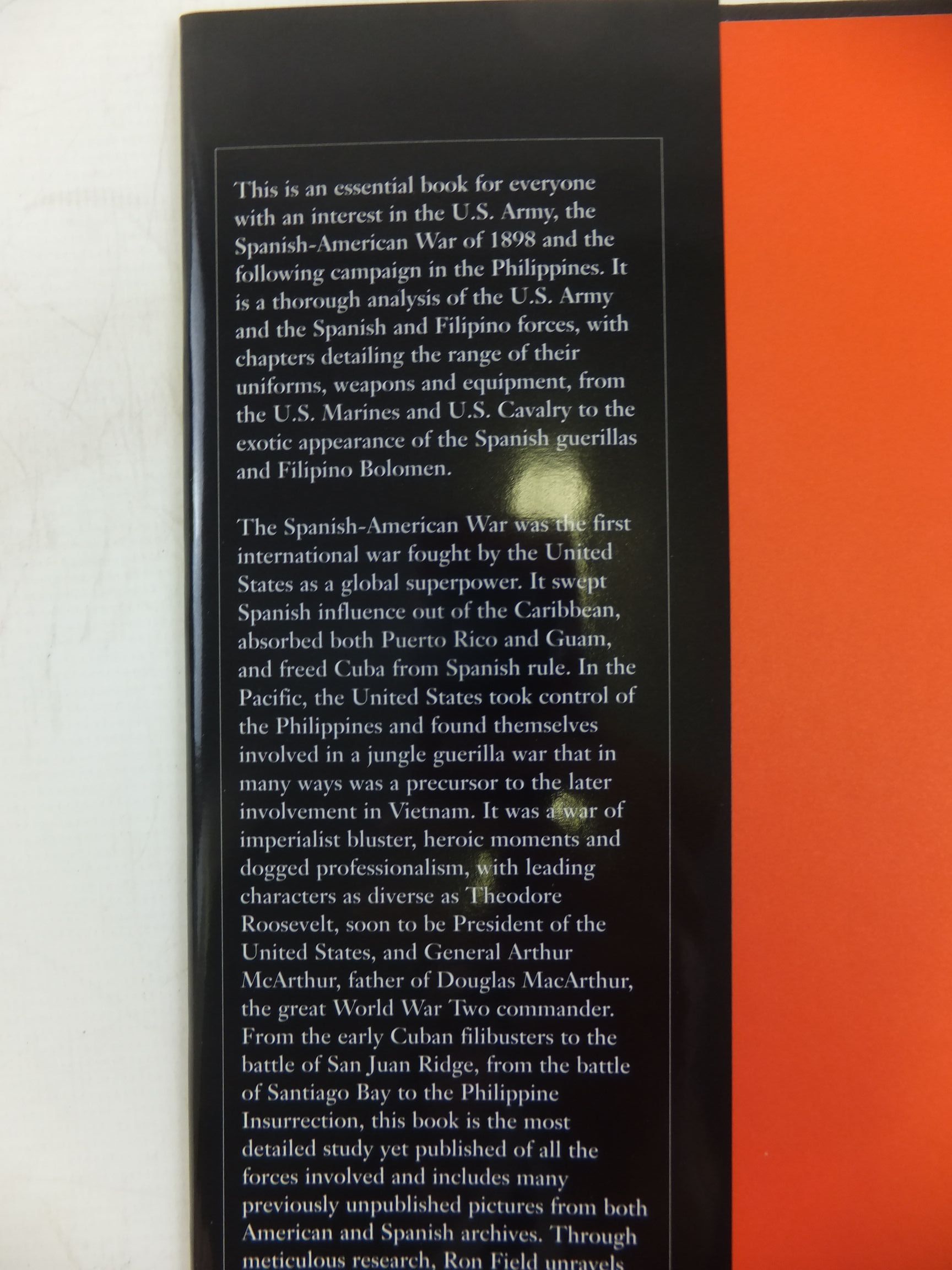 Fine condition in a fine dustwrapper. Brassey's History of Uniforms series. Large format. Colour and b/w photos. A thorough analysis of the US, Spanish and Filipino armies with chapters detailing the range of their uniforms, weapons and equipment from the US Marines and US Cavalry to the exotic appearance of the Spanish Guerillas and Filipino Bolomen.