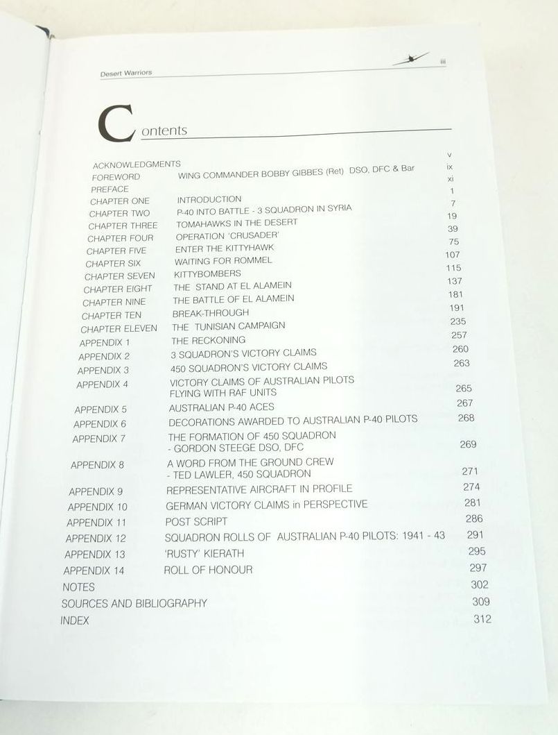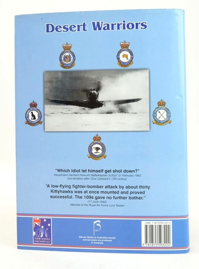 Slightly better than very good condition in a slightly better than very good dustwrapper. A tribute to the Australians of the Desert Air Force who kept the P-40s flying, despite endless personal hardships and enemy pressure, and to the pilots who flew the aircraft over a hostile desert against a formidable foe. Blue cloth boards, gilt title to spine. B/w photos.