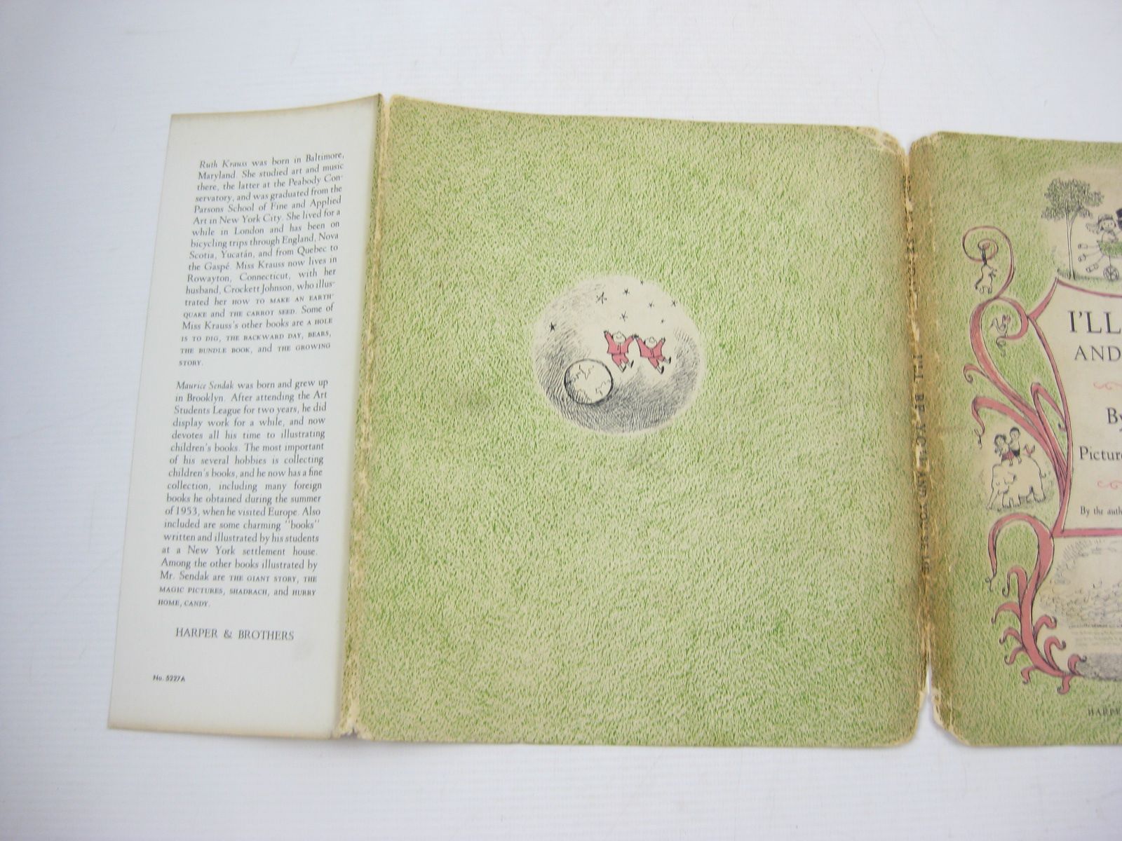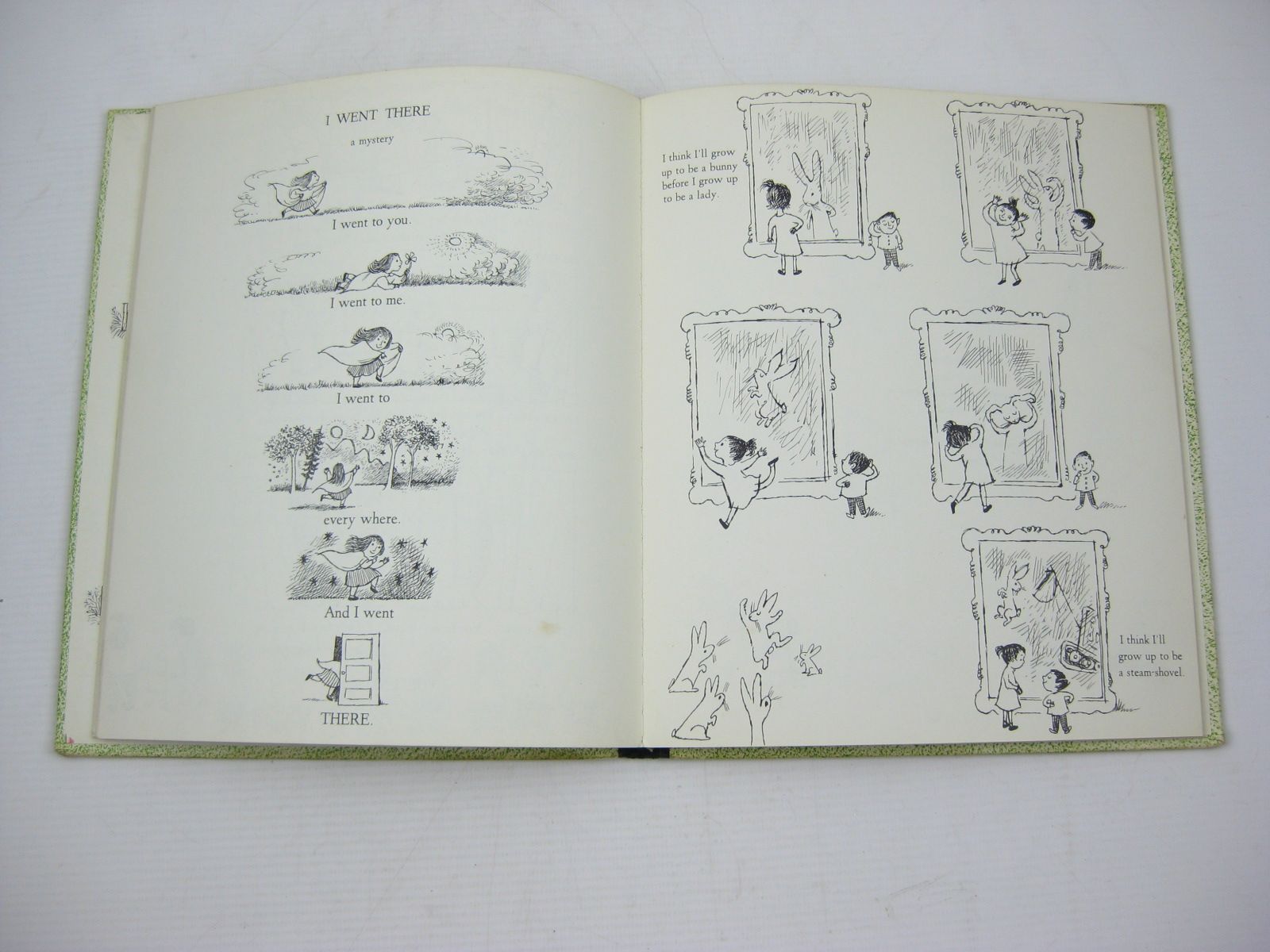 Very good condition in a good dustwrapper. A book of rhymes. Green/pink pictorial boards annd endpapers. Black cloth spine. Full of sweet b/w illustrations. American edition.